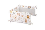 BeschützerDie von unserem Online-Shop Formommy angebotenen Produkte bestehen aus 100 % hochwertiger, weicher Baumwolle. Die Verarbeitungsqualität und das schöne Aussehen werden alle Ihre Erwartungen erfüllen. Entworfen und hergestellt in Polen mit Liebe zum Detail, was eine sichere Verwendung garantiert. Von außen ist der Protektor ein weiches und angenehm anzufassendes Produkt, innen verfügt er als weiche Füllung über ein eingenähtes elastisches Polyestervlies. Der im Schoner verwendete Vliesstoff ist speziell versteift, sodass der Schoner die richtige Form behält und perfekt am Kinderbett haftet. Da es in die Nähte eingenäht ist, verrutscht es beim Waschen und Tragen nicht. Alle Materialien sorgen für eine ausreichende Luftzirkulation. Unser Kleinkind atmet sicher und bewegt sich frei, umgeben von einem weichen Schutz. Was ist wichtig, Die Schnüre, mit denen der Schoner am Kinderbett befestigt wird, sorgen für eine stabile und sichere Befestigung. Jeder Protektor von Formommy ist nicht nur ästhetisch gefertigt, er verfügt auch über ein ZertifikatÖko-Tex-Standard 100 .