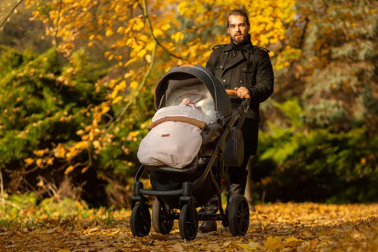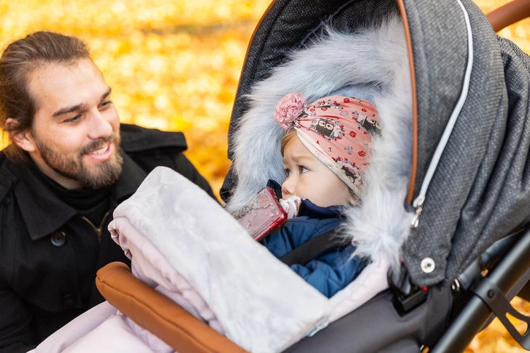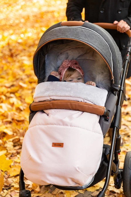 Der Schlafsack passt in tiefe Kinderwagen, Buggys und Schlitten. Es hat auch Löcher für 5-Punkt-Gurte, mit denen Sie Ihr Kind sicher befestigen können.