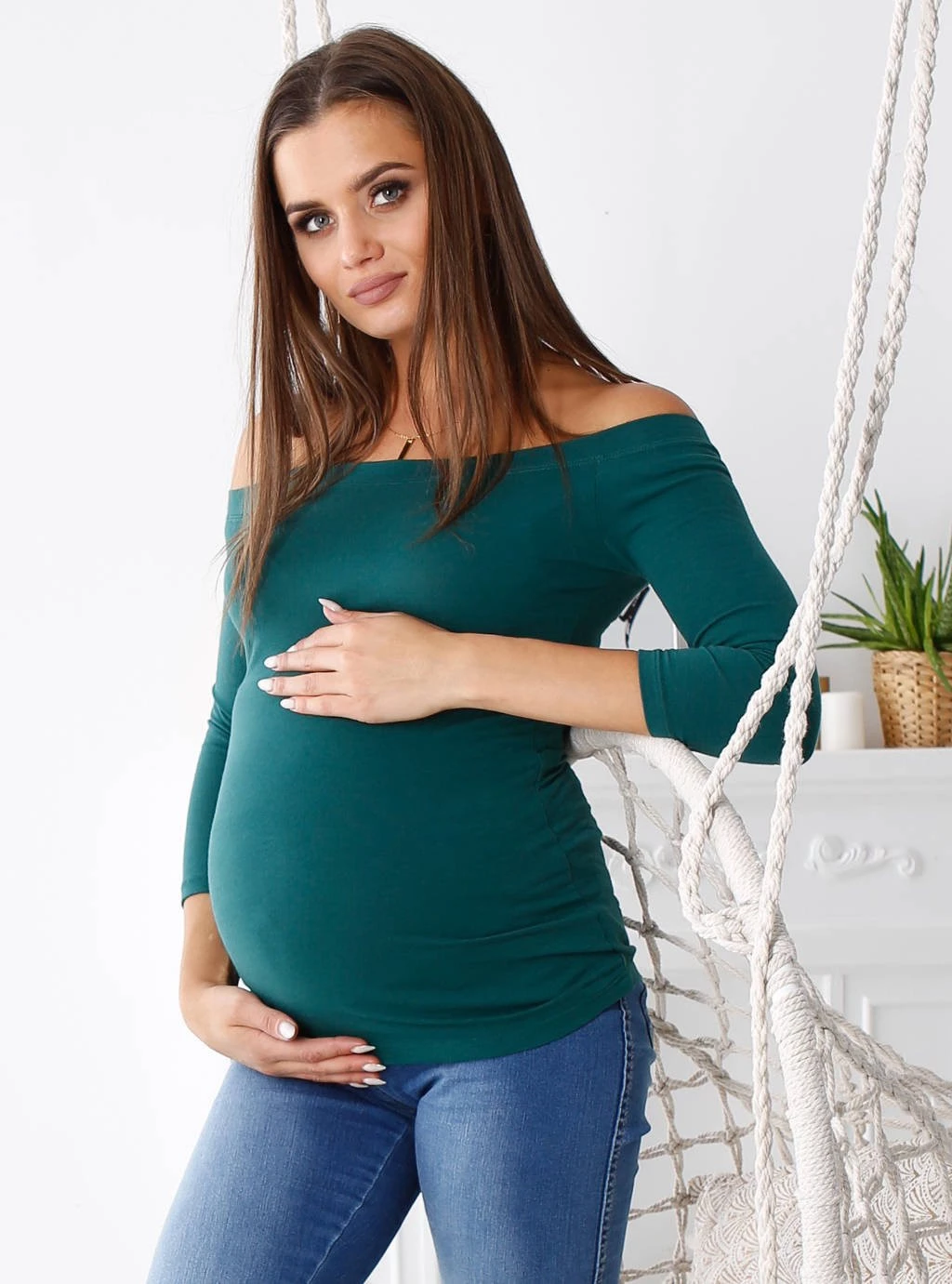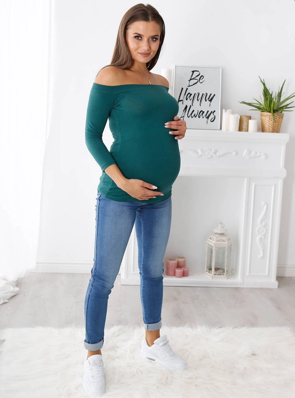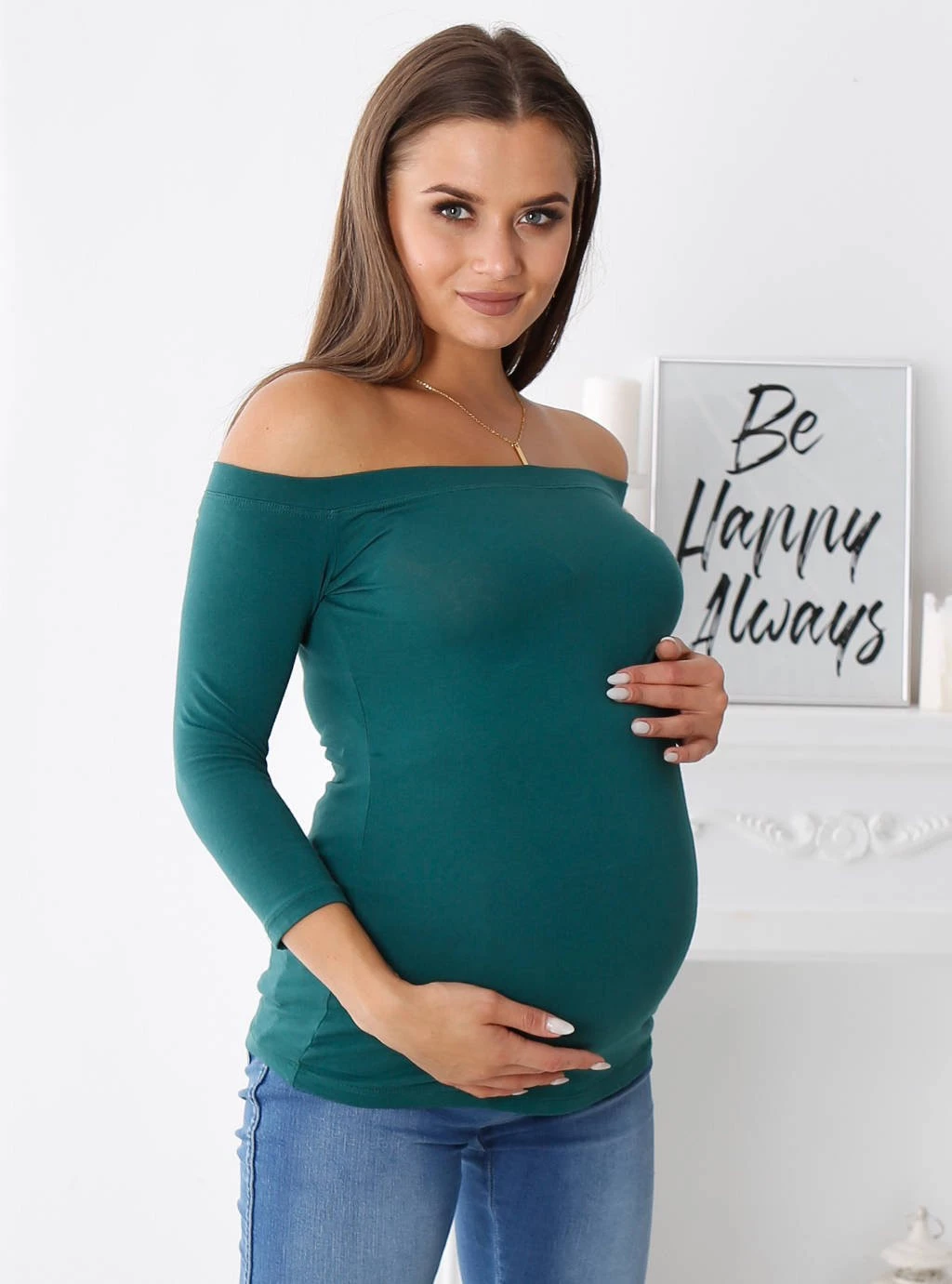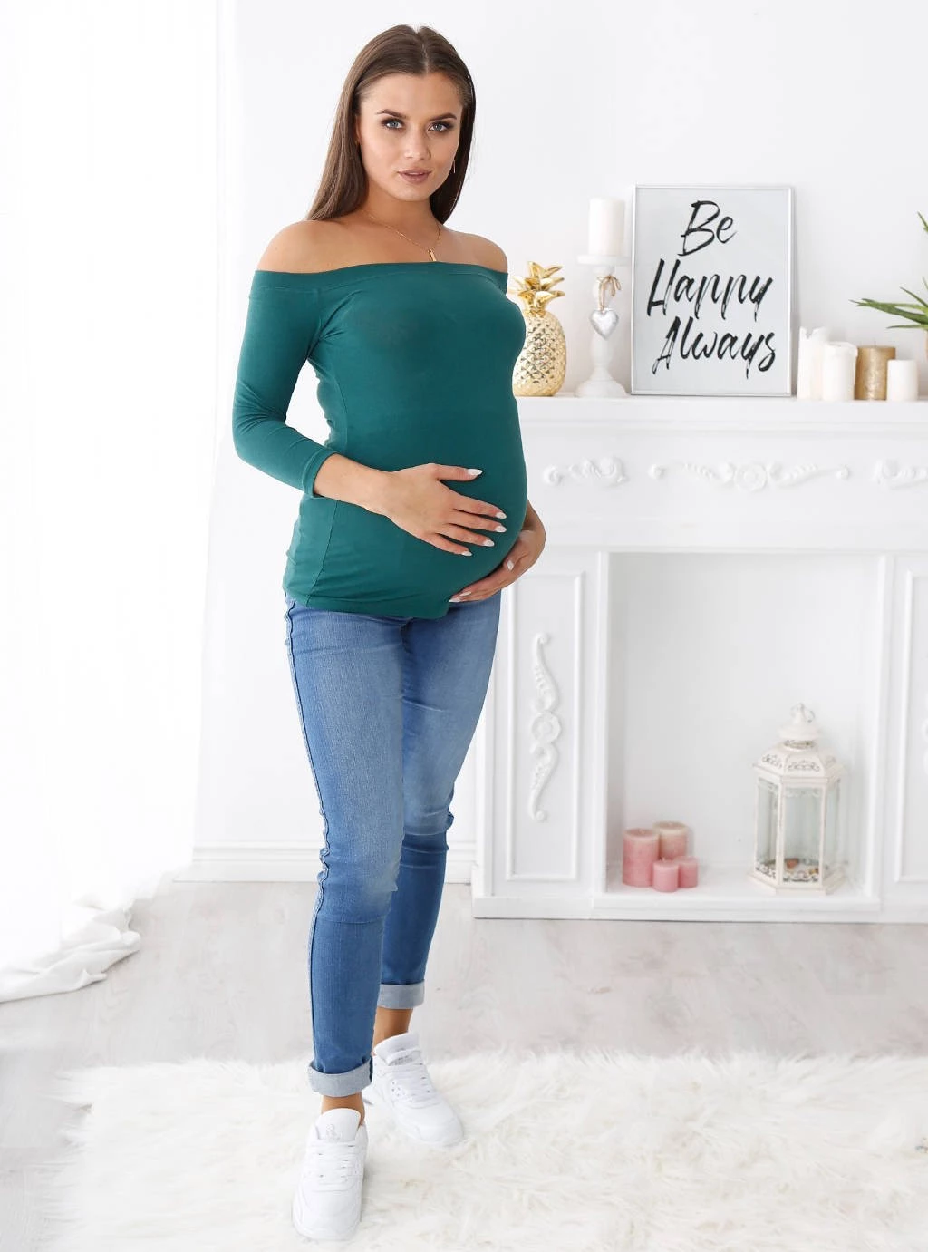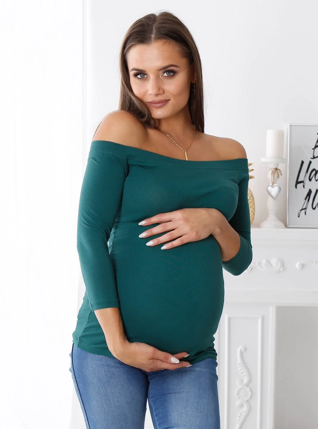 Posiada rękaw 3/4 oraz dekolt hiszpański, który podkreśla kobiece atuty i nadaje wdzięku. Gładki materiał świetnie układa się na ciążowym brzuszku. Julia idealnie zaprezentuje się również po ciąży jako baza pasująca niemal do wszystkiego!