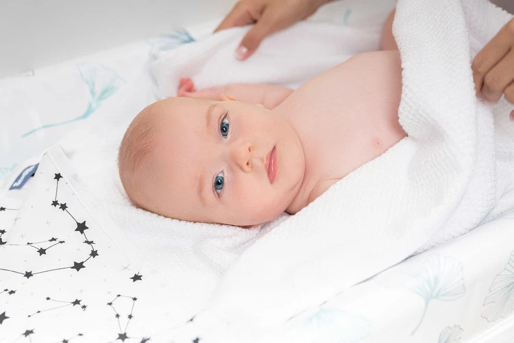 Eine Badedecke mit Kapuze ist ein Produkt, das sich perfekt eignet, um das Baby nach dem Baden fest einzuwickeln.