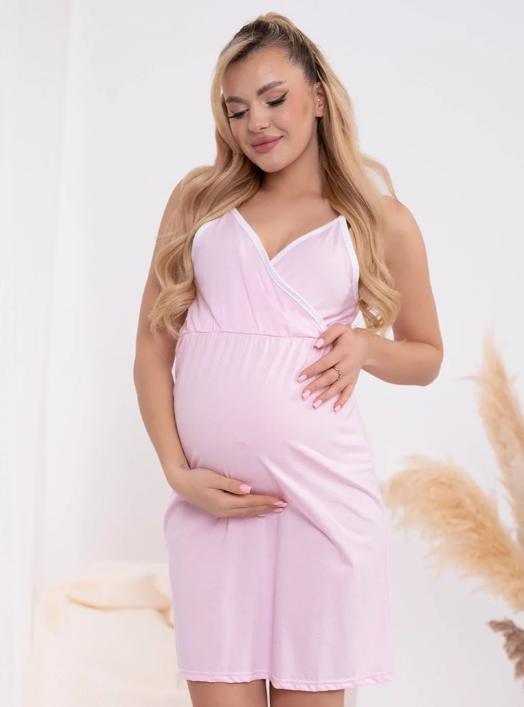 Ein einzigartiges, feminines Umstandsnachthemd in zartem Rosa mit weißem Besatz an den Trägern „Aphrodite“ ist die perfekte Wahl für junge und werdende Mütter, die sich sowohl während der Schwangerschaft als auch nach der Geburt wohl und stilvoll fühlen möchten. Bequeme Nachthemden mit Überlappung sind eine hervorragende Option für zukünftige Mütter, die praktische, effektive und gleichzeitig bequeme Nachtwäsche suchen, die ihnen Komfort und Bewegungsfreiheit während der Schwangerschaft bietet und die nächtliche Ernährung des Neugeborenen erleichtert. Aus hochwertiger Baumwolle gefertigt, ist dieses Nachthemd nicht nur weich und sanft zur Haut, sondern auch flexibel, wodurch es sich perfekt an Ihren wachsenden Schwangerschaftsbauch anpasst und Sie es tagsüber problemlos mit einem bequemen Umstandsbademantel tragen können. Umstandsshirts aus 100 % Baumwolle sind ein atmungsaktives, angenehmes Material, das der Haut der frischgebackenen Mutter auch in heißen Nächten während der Stillzeit ausreichend Belüftung bietet.