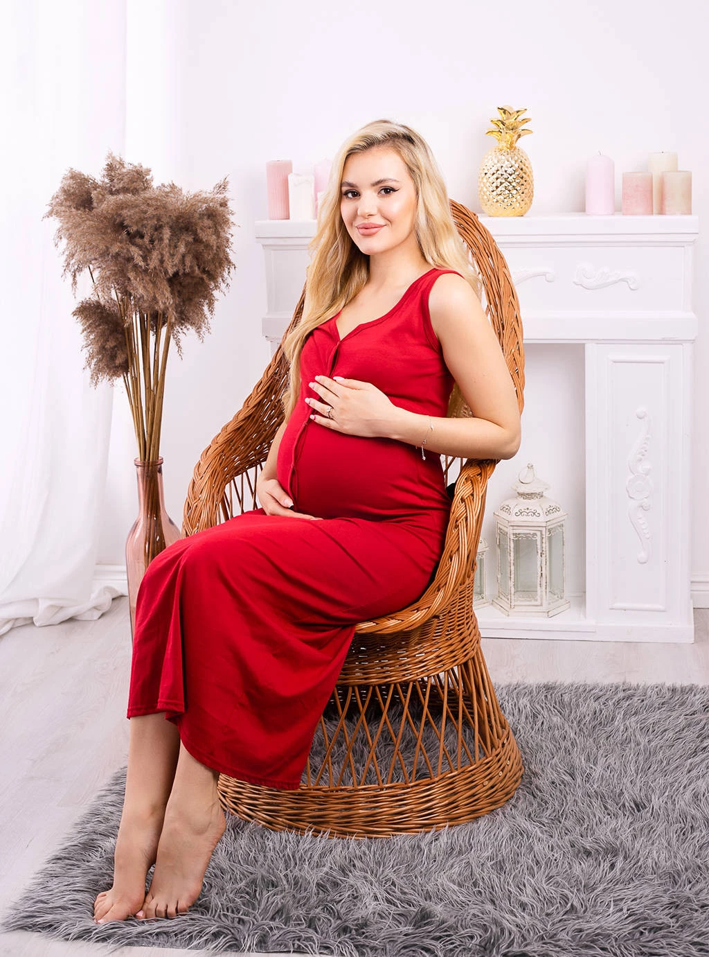 Bordowa długa koszula na ramiączkach z serii BASIC oprócz tego, że jest funkcjonalna i praktyczna, posiada również jeszcze jedną, dla wielu kobiet być może bardzo istotną zaletę – w ogóle nie wygląda jak typowe i standardowe koszule do karmienia. Krój w ogóle nie odbiega od zwyczajnych koszul nocnych dla kobiet, jakie można znaleźć w standardowych sklepach z odzieżą. W górnej części koszula do karmienia jest dosyć dopasowana i delikatnie rozchodzi się ku dołowi - jest więc wstanie pomieścić brzuszek z początku ciąży. Materiał, z jakiego została uszyta, jest elastyczny, a jasny odcień bordowego będzie pasował wielu kobietom – zarówno o jasnych, jak i o ciemnych włosach. Internetowy butik ciążowy Formommy zadbał o to, aby koszula była przyjemna w dotyku zarówno dla mamy, jak i dla maluszka.