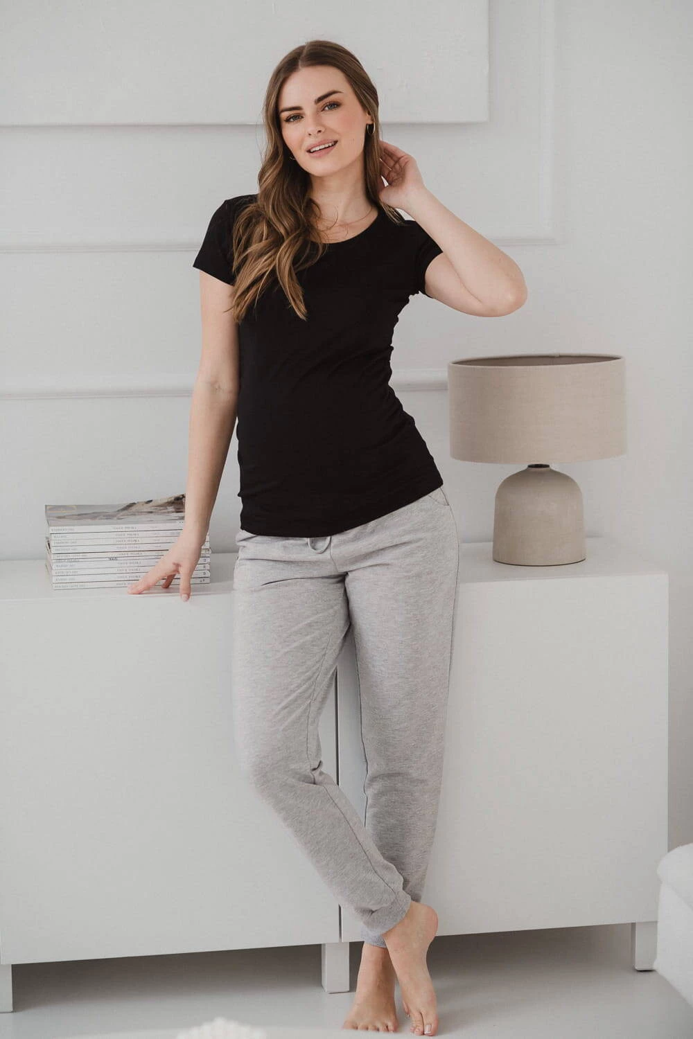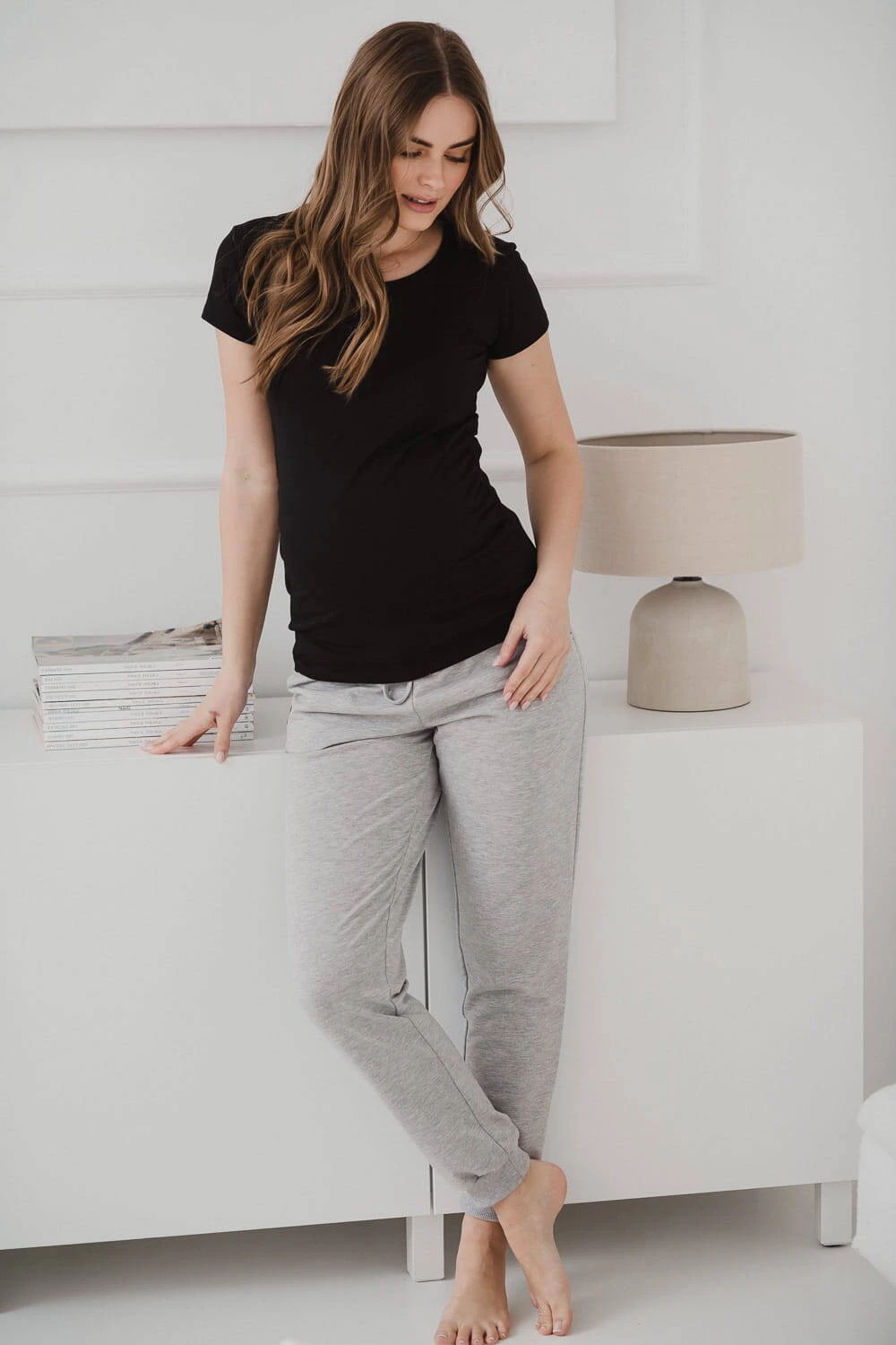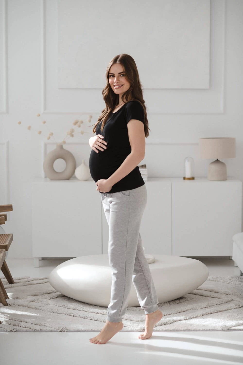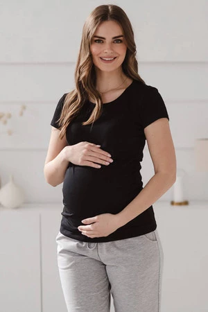 Bauch-Umstandsbluse mit kurzen Ärmeln, schwarz