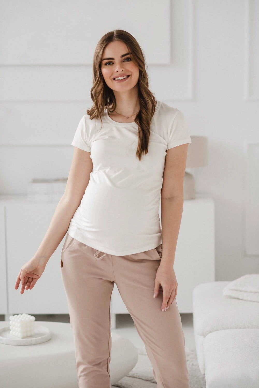 Bauch-Umstandsbluse mit kurzen Ärmeln, cremeweiß