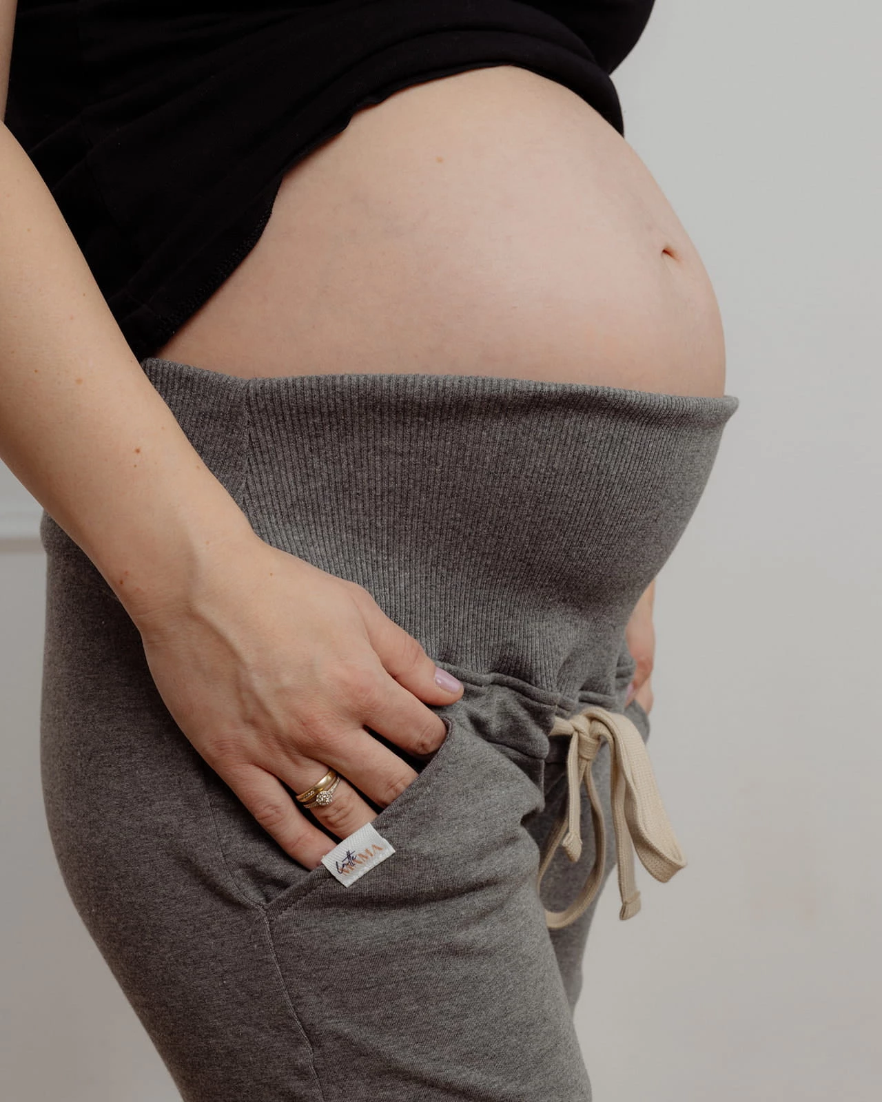 Postpartum : Dank des Kordelzugs kann diese Hose auch nach der Schwangerschaft als normale Jogginghose getragen werden.