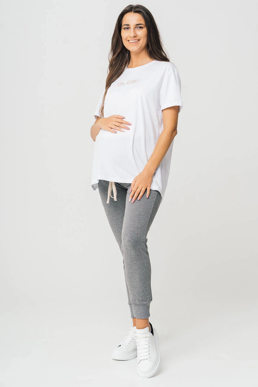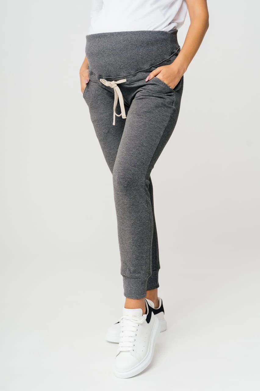 Umstands-Jogginghose „Never Walk Alone“ mit hoher Taille – Dunkelgrau meliert