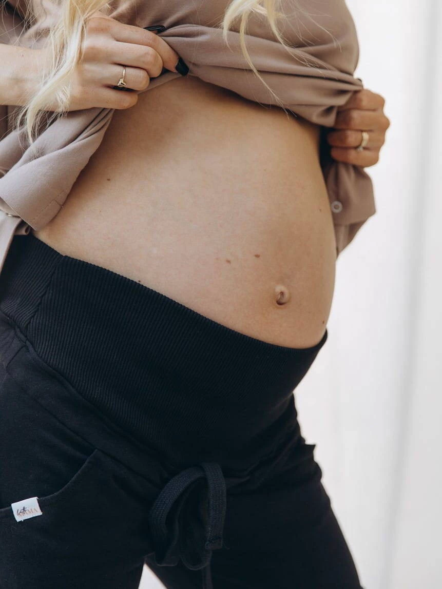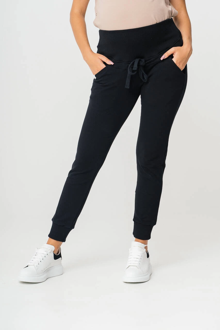 Wählen Sie eine bequeme und stilvolle schwarze Umstands-Jogginghose, die ein Muss in der Garderobe jeder werdenden Mutter sein wird !