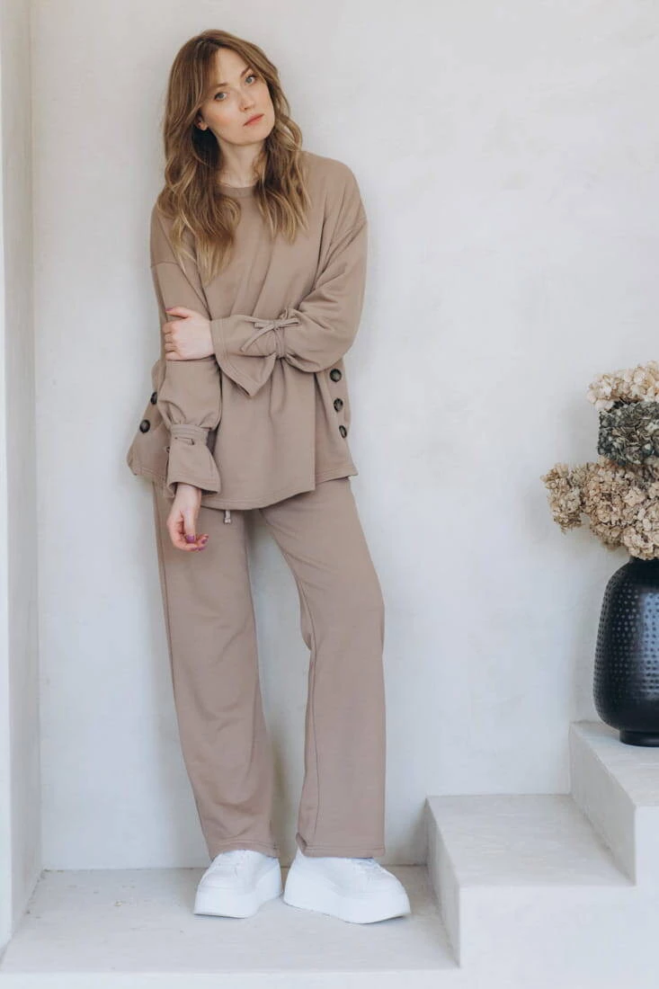 Einzigartige kaffeefarbene Hosen mit einem elastischen Umstandseinsatz am Bauch sind ein Angebot für Frauen, die praktische Lösungen mögen. Weite Hosen sind ein Must-Have, sie passen zu verschiedenen Styles und können Sie vom ersten bis zum dritten Trimester und nach der Geburt begleiten, wenn sich der Körper erholt. Ein spezieller, bequemer Schwangerschaftseinsatz, der in den Bauchbereich und die Taschen eingenäht ist, bietet Ihnen während Ihres gesamten Schwangerschaftsabenteuers Komfort und Bequemlichkeit. Und nach der Schwangerschaft, wenn man das Panel hochkrempelt, können Umstandshosen eine schöne Ergänzung für die Zeit nach der Geburt sein, wenn nichts mehr auf den Bauch drücken kann.