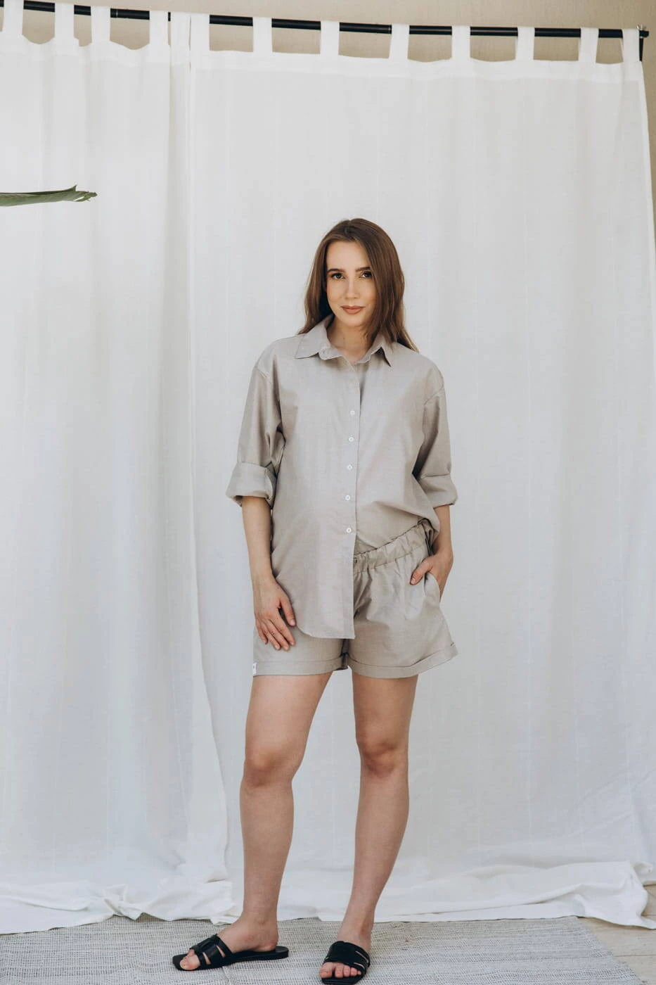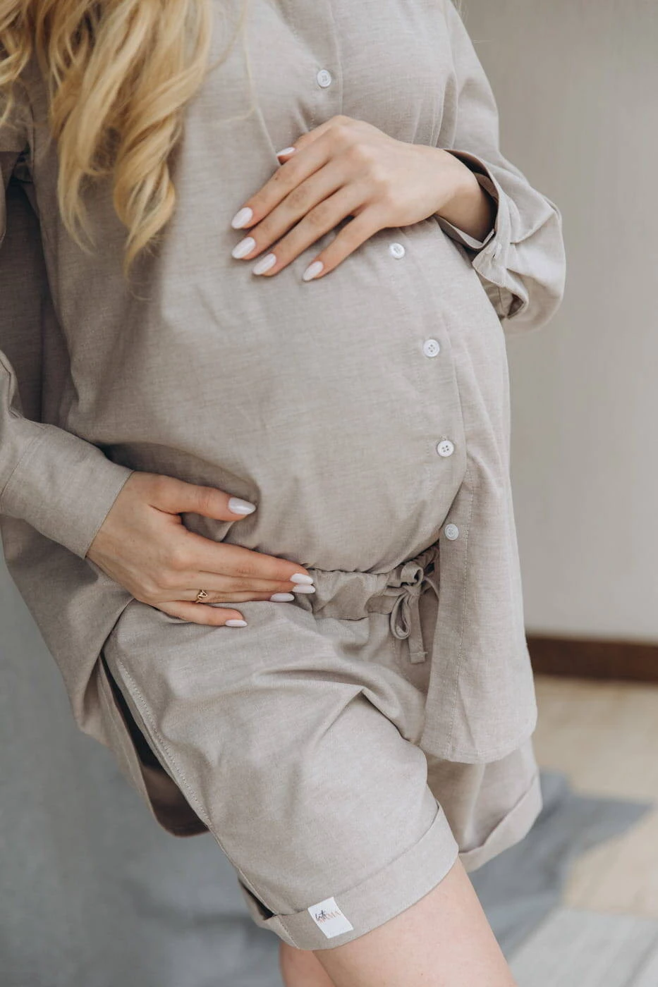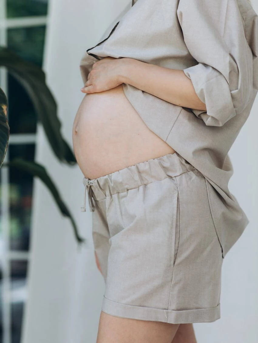 Beige kurze Umstandshose – die perfekte Kombination aus Stil und Komfort für werdende Mütter. Diese Baumwollshorts sind so konzipiert, dass sie während der gesamten Schwangerschaft maximalen Komfort bieten, ohne auf einen modischen Look zu verzichten. Jetzt können Sie dank einzigartiger Umstandsmode wie der Oxford-Umstandsshorts-Kollektion in modischen Farben, die zu jedem Anlass passen, perfekte Umstandsmode kreieren!