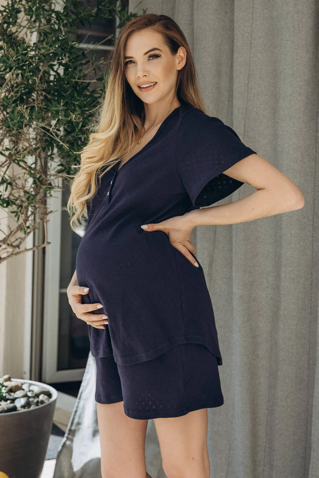 Wir präsentieren Ihnen den 2-teiligen Umstands- und Stillpyjama „Beautiful Dreams“ in Marineblau. Diese hochwertige Nachtwäsche wurde für anspruchsvolle Frauen entwickelt, die Wert auf Komfort und Stil legen. Bequeme Umstandspyjamas bestehen aus 100 % zarter Baumwolle und bieten maximalen Komfort sowohl während der Schwangerschaft als auch beim Stillen.