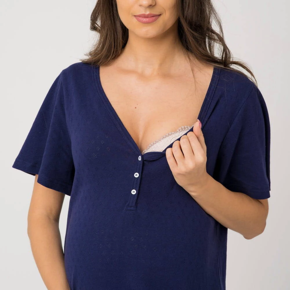 Goodnight Kiss Nachthemd für Wehen und Stillen – Marineblau