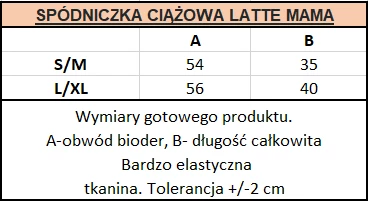 Wir empfehlen Ihnen, Ihre Vorschwangerschaftsgröße zu wählen, der Rock besteht aus elastischem Material, was eine große Toleranz bei der Größenwahl zulässt.