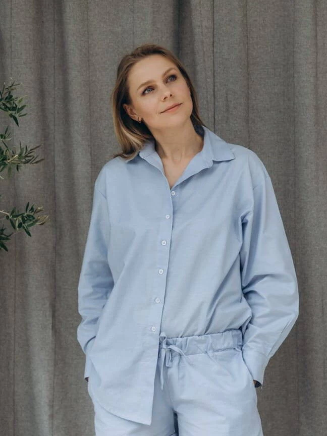 OXFORD Umstands- und Stillbluse – Himmelblau