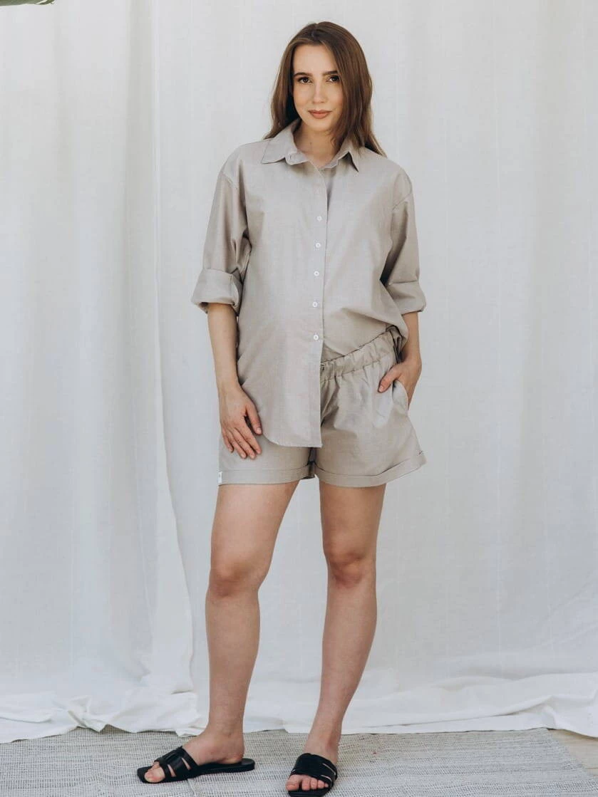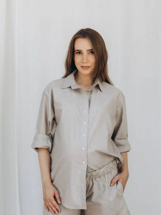 Die Umstands- und Stillbluse OXFORD in Beige ist die perfekte Wahl für werdende Mütter, die Wert auf Eleganz und Komfort legen. Aus hochwertigem Material gefertigt, sorgt es den ganzen Tag über für Komfort, unabhängig von der Situation. Die beige Bluse für Damen zeichnet sich durch einen klassischen Hemdblusenschnitt mit Kragen und durchgehenden Knöpfen aus, der beim Füttern des Babys einen einfachen und diskreten Zugang zur Brust ermöglicht. Shirts mit durchgehenden Reißverschlüssen erleichtern das Stillen Ihres Babys, aber auch am Ende der Schwangerschaft kann diese elegante Hemdbluse ein tolles Kleidungsstück sein.