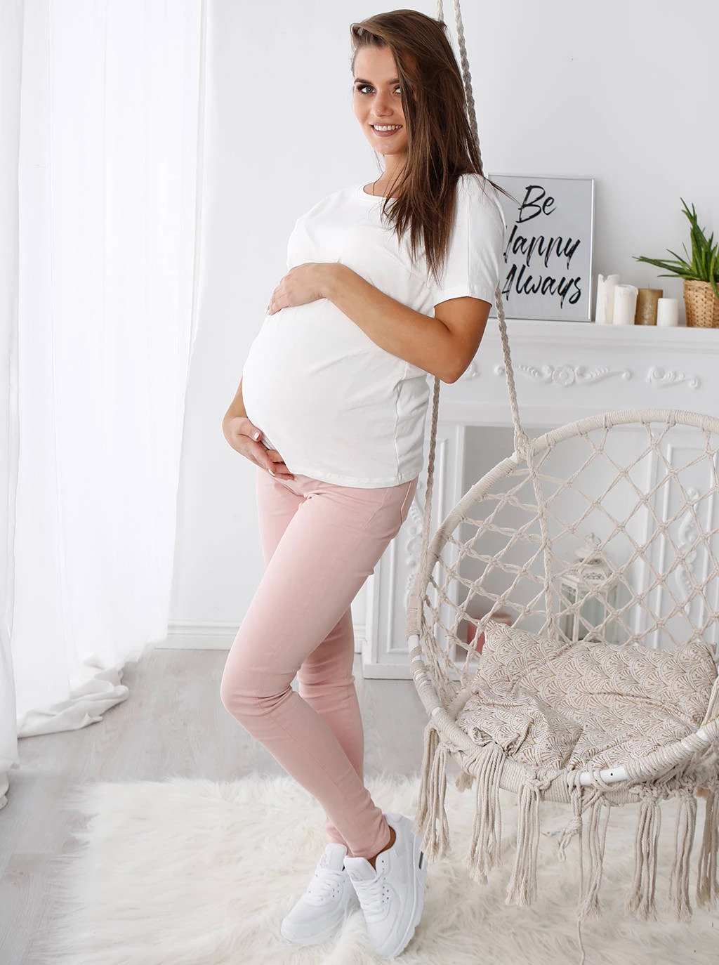 Spodnie jeansowe ciążowe to swoista klasyka. Największą popularnością cieszą się modele z delikatną wszytą gumką na brzuszku, która dobrze utrzymuje cały materiał na sylwetce. W stylizacji warto zestawić je z klasycznymi elementami garderoby, takimi jak koszula ciążowa z długim rękawem. Cały zestaw będzie prezentował się niezwykle stylowo! Podczas kompletowania domowego stroju wybierz oversize'owy sweter lub t-shirt. To wygodne i atrakcyjne połączenie, które z pewnością docenisz.