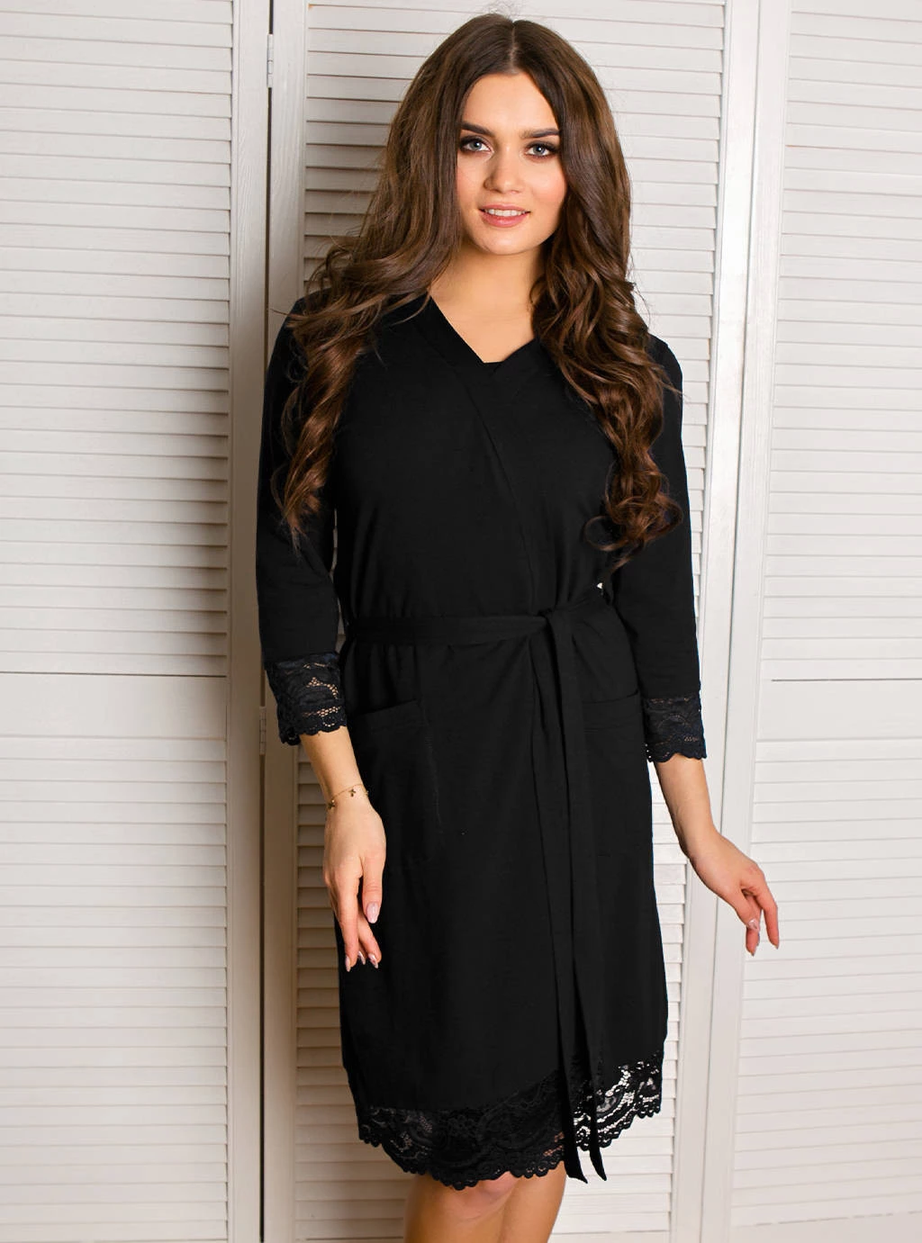 Der leichte Morgenmantel 'Basic' aus Baumwolle bietet ihnen an höchsten Komfort. Bademantel aus 100% gestrickter Baumwolle. Es ist extrem weich und leicht und mit einer zarten femininen Spitze versehen.