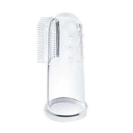 Eine Silikonzahnbürste zum Reinigen der ersten Zähne eines Kleinkindes und zum Massieren des Zahnfleisches sollte bei den kleinsten Kindern, auch solchen, die noch keine Zähne haben, verwendet werden, um ihnen die Pflege der Mundhygiene beizubringen. Mit speziellen Tabs können Sie empfindliches Zahnfleisch gründlich massieren. Das Design der Bürste ermöglicht es, auch schwer zugängliche Stellen zu erreichen und Speisereste zu entfernen. Mit der Zahnbürste können Eltern das empfindliche Zahnfleisch/Zähne des Babys sicher reinigen, ohne befürchten zu müssen, dass es beschädigt wird, was bei der Verwendung herkömmlicher Zahnbürsten der Fall sein kann und das Kind davon abhält, sich in Zukunft die Zähne zu putzen. Hergestellt aus weichem und sicherem Silikon.