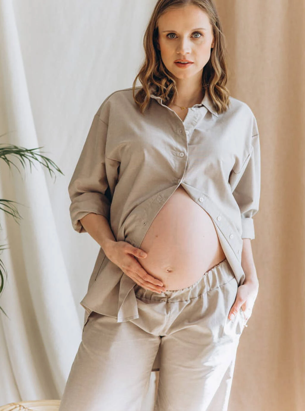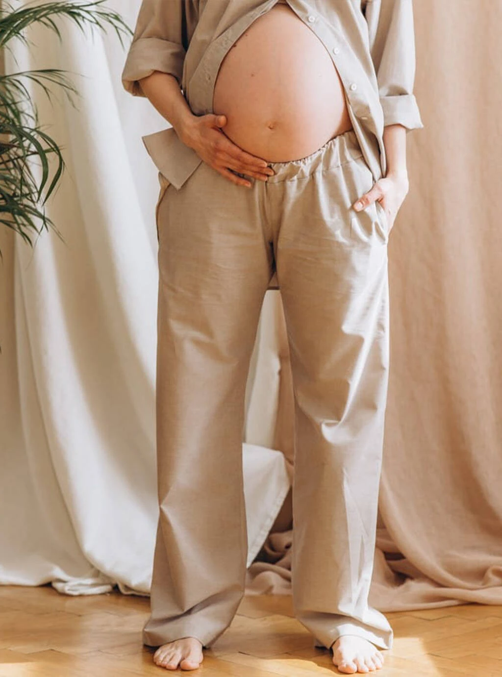 Wählen Sie eine bequeme Umstandshose in Beige, die ein Muss in der Garderobe jeder werdenden Mutter sein wird !
