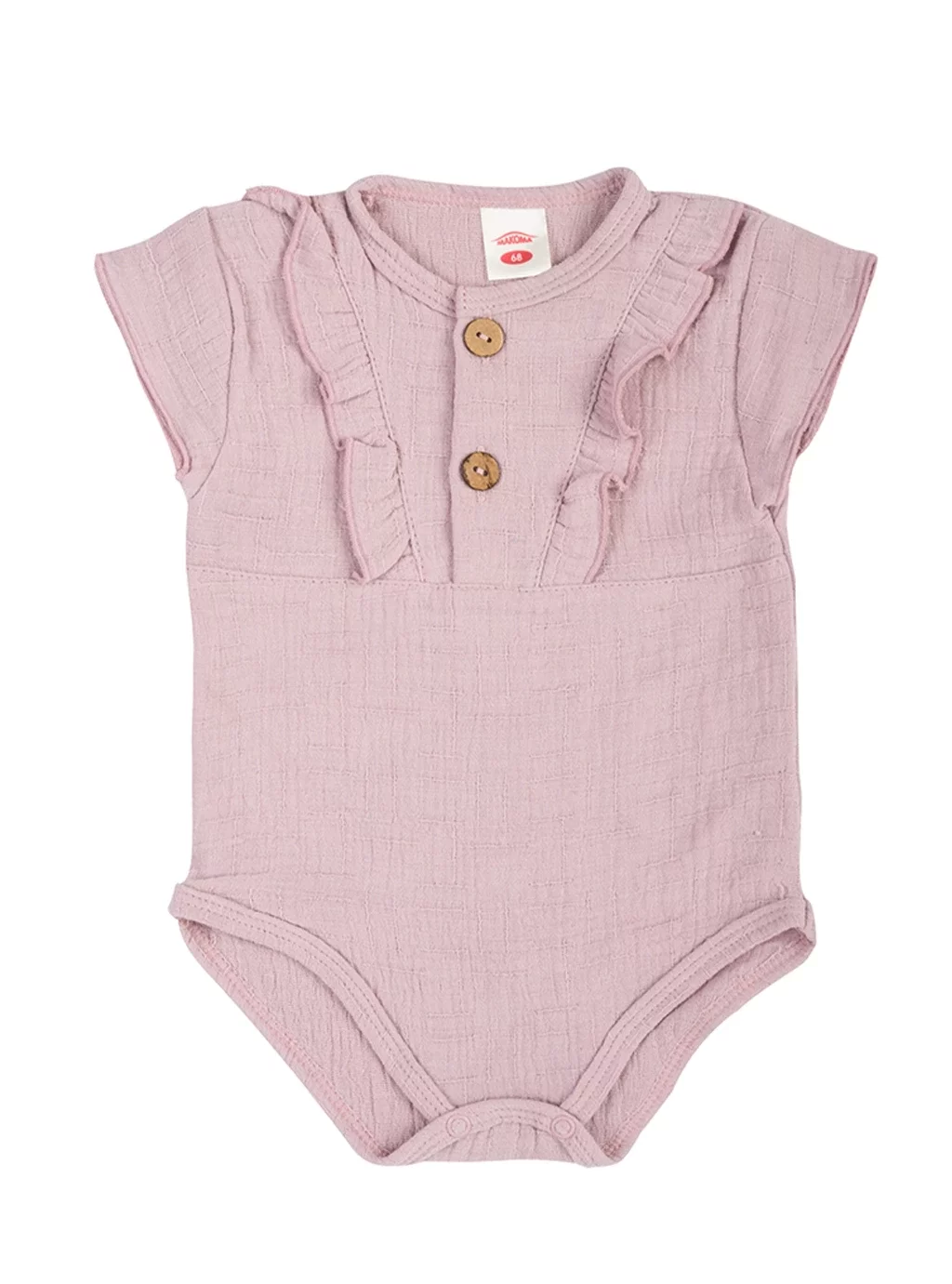 Makoma Bamboo Muslin Girl Kurzarm-Baby-Body – Rosa