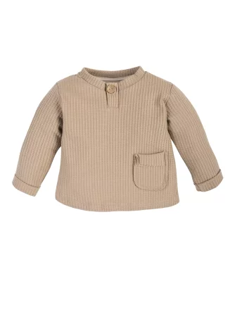 Ein bequemes Baby-Sweatshirt mit Bündchen, einem Verschluss unter dem Hals mit kleinen, stilvollen Knöpfen und einer dekorativen Tasche auf der Vorderseite. Ein universelles beiges Baby-Sweatshirt ist eine gute Wahl für Ihr Kind. Ein Baby-Sweatshirt mit einem Rock oder Kleid und einer warmen Strumpfhose oder bequemen Shorts und schon ist Ihr Kind bereit für einen Spaziergang an einem kalten Tag. Ein hochwertiges Baby-Sweatshirt aus Baumwolle mit Waffelstruktur und Liebe zum Detail.