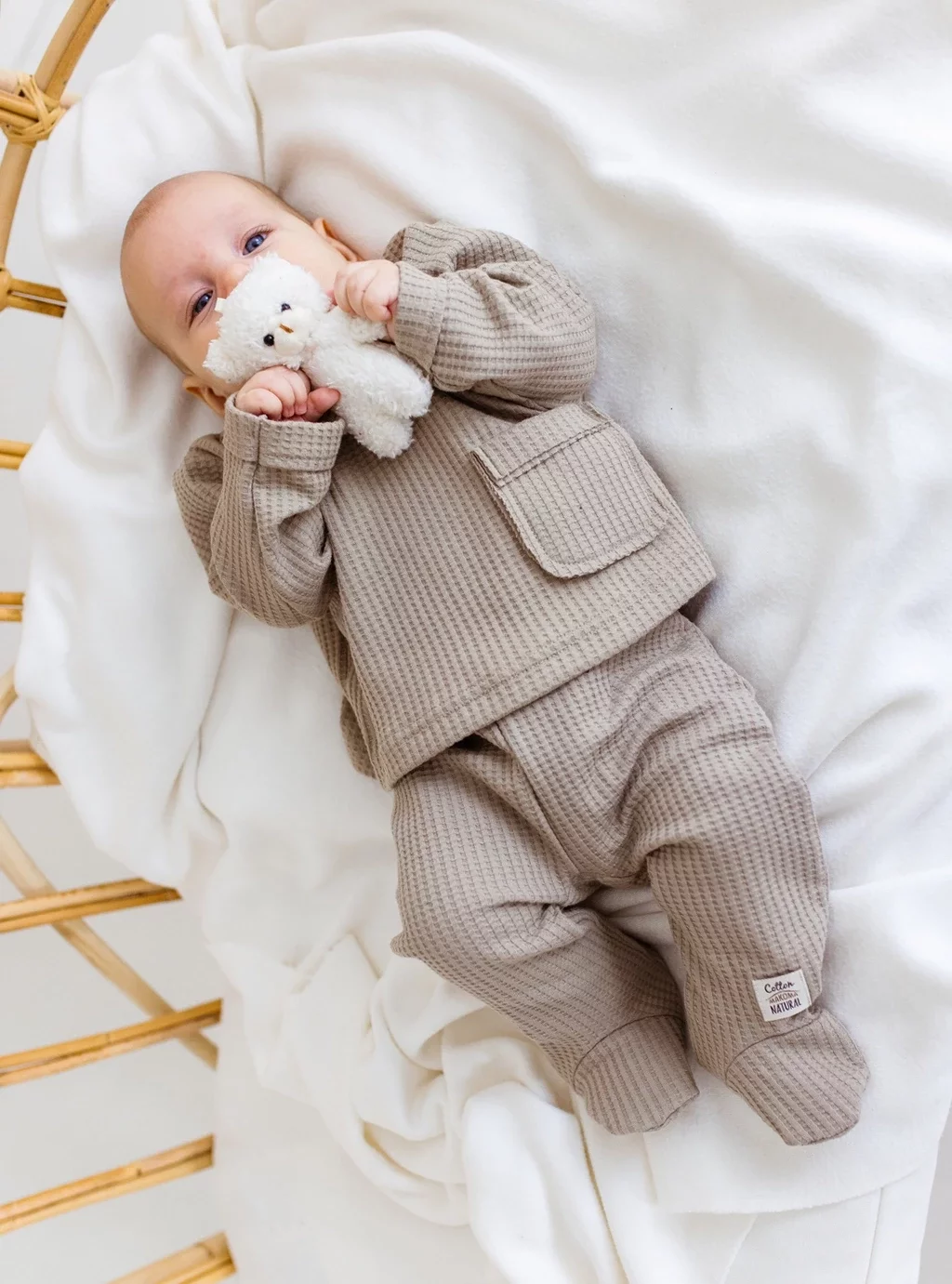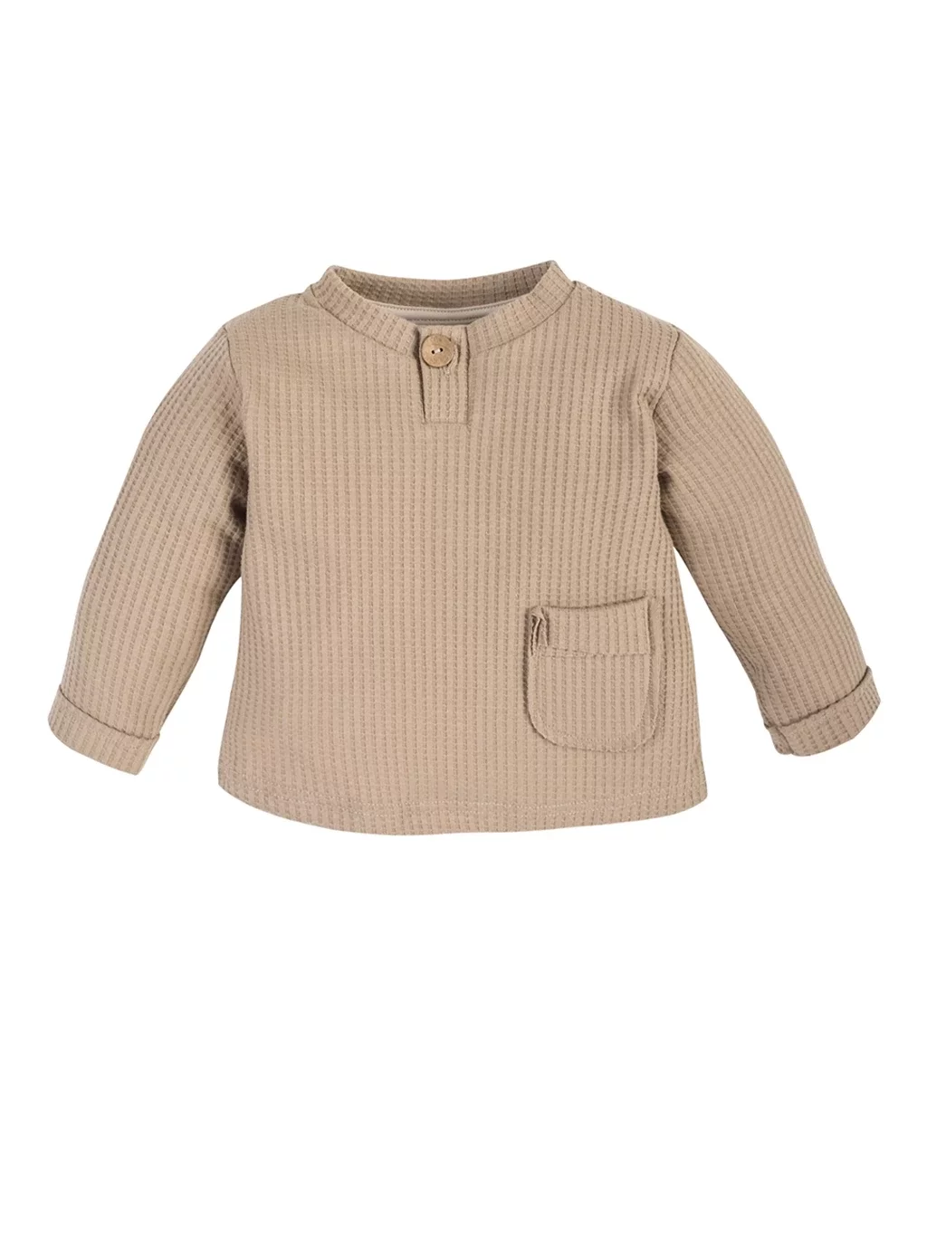 Natürliches Waffel-Baby-Polo-Sweatshirt – Stein