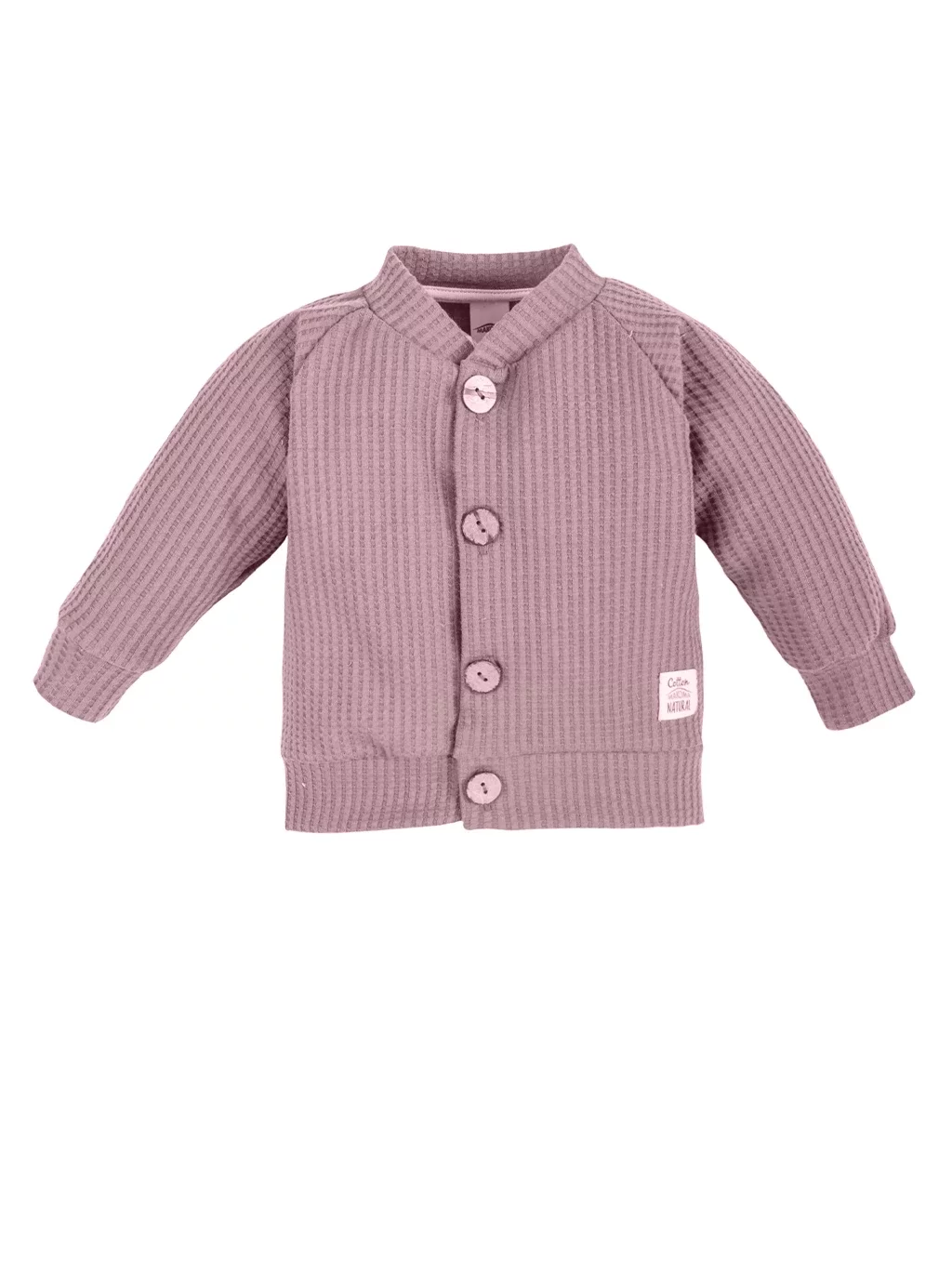 Ein bequemes rosa Sweatshirt für Babys mit Stehkragen und Holzknöpfen. Makoma, Hersteller von Kinder-Sweatshirts, hat eine einzigartige Kollektion aus weichem, luftigem Stoff kreiert, zu der auch ein rosa Sweatshirt gehört. Ein bequemes Sweatshirt für ein Baby ist ein unverzichtbarer Bestandteil der Babygarderobe, daher lohnt es sich, in ein hochwertiges Produkt zu investieren, wie zum Beispiel ein Baby-Sweatshirt mit niedlichen Knöpfen aus der Natural Waffel-Kollektion.