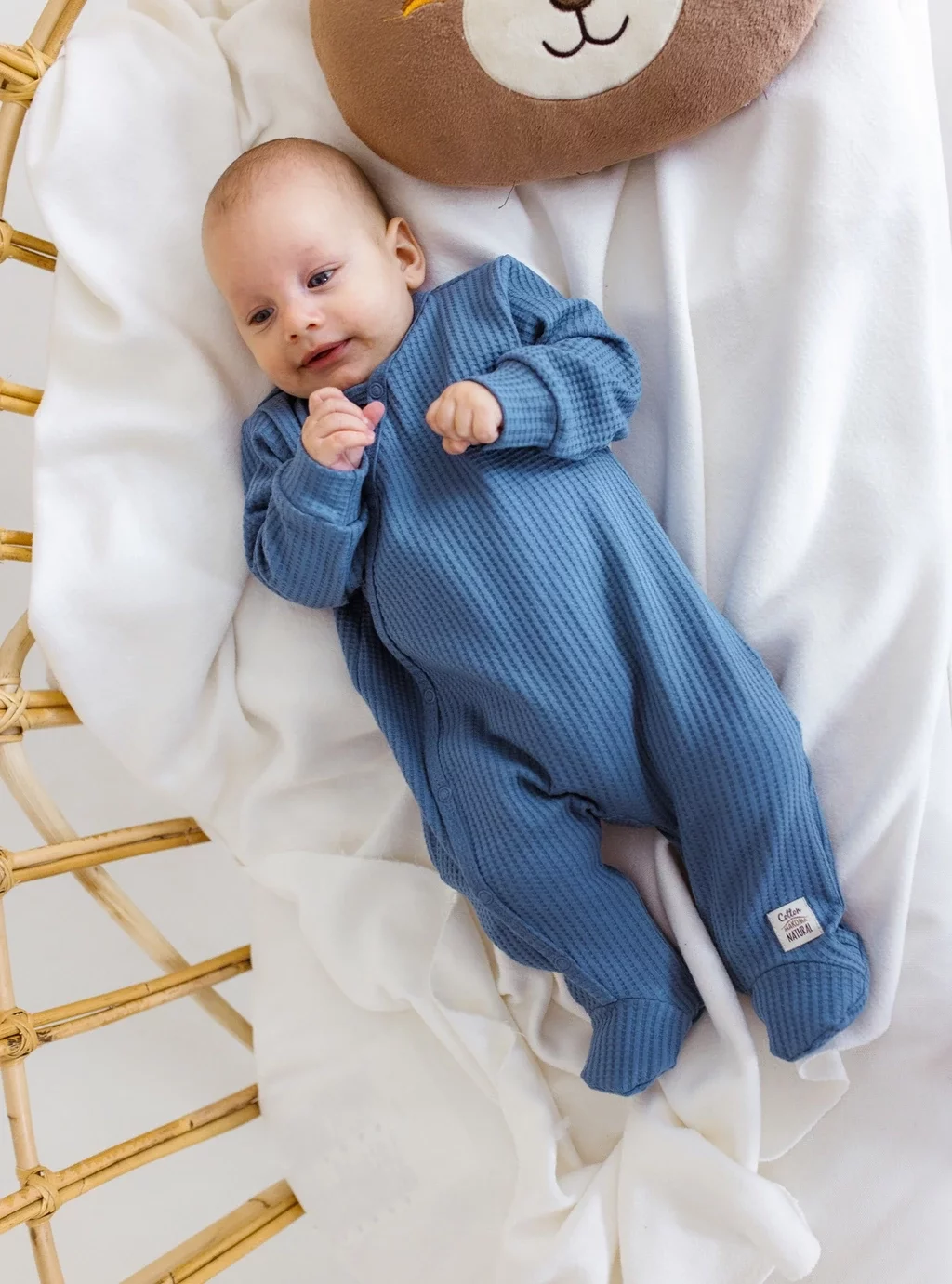 Ein einteiliger Babystrampler in einem schönen Blauton ist eine Idee für ein bequemes Outfit für Jungen und Mädchen. Ein hochwertiger Kinderstrampler pflegt die Haut des Kindes, und schließlich steht der Tragekomfort des Kindes an erster Stelle. Legen Sie einen Babystrampler direkt an die Haut Ihres Kindes und sorgen Sie so für die Haut Ihres Babys sowie für die Sicherheit und Bewegungsfreiheit, die Ihr Kind für seine Entwicklung braucht. Babystrampler mit durchgehendem Reißverschluss helfen Ihnen, bei Bedarf schnell die Windel zu wechseln. Ein Babystrampler ist eine tolle Lösung für einen Spaziergang an einem kälteren Tag, aber auch für den Spaß zu Hause. Ein universeller Babystrampler behält durch die richtige Pflege und das Waschen bei 30 Grad seine schöne blaue Farbe und perfekte Form.