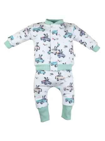 Das Babyset mit Autos mit Dachs besteht aus 100 % weicher Bio-Baumwolle mit einem zarten Bündchen, damit es nicht auf den Bauch des Babys drückt.