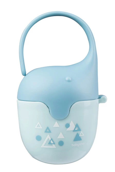 Pojemnik na smoczek w kształcie Słonika to praktyczny produkt podczas wszelkich podróży. Ochroni smoczek dziecka przed zabrudzeniami, jest wygodny w użyciu i łatwy do zamocowania. Elastyczna trąba pozwala na przymocowanie pojemnika do wózka, fotelika lub torby spacerowej. Wykonany z bezpiecznych materiałów, nie zawiera Bisfenolu A.