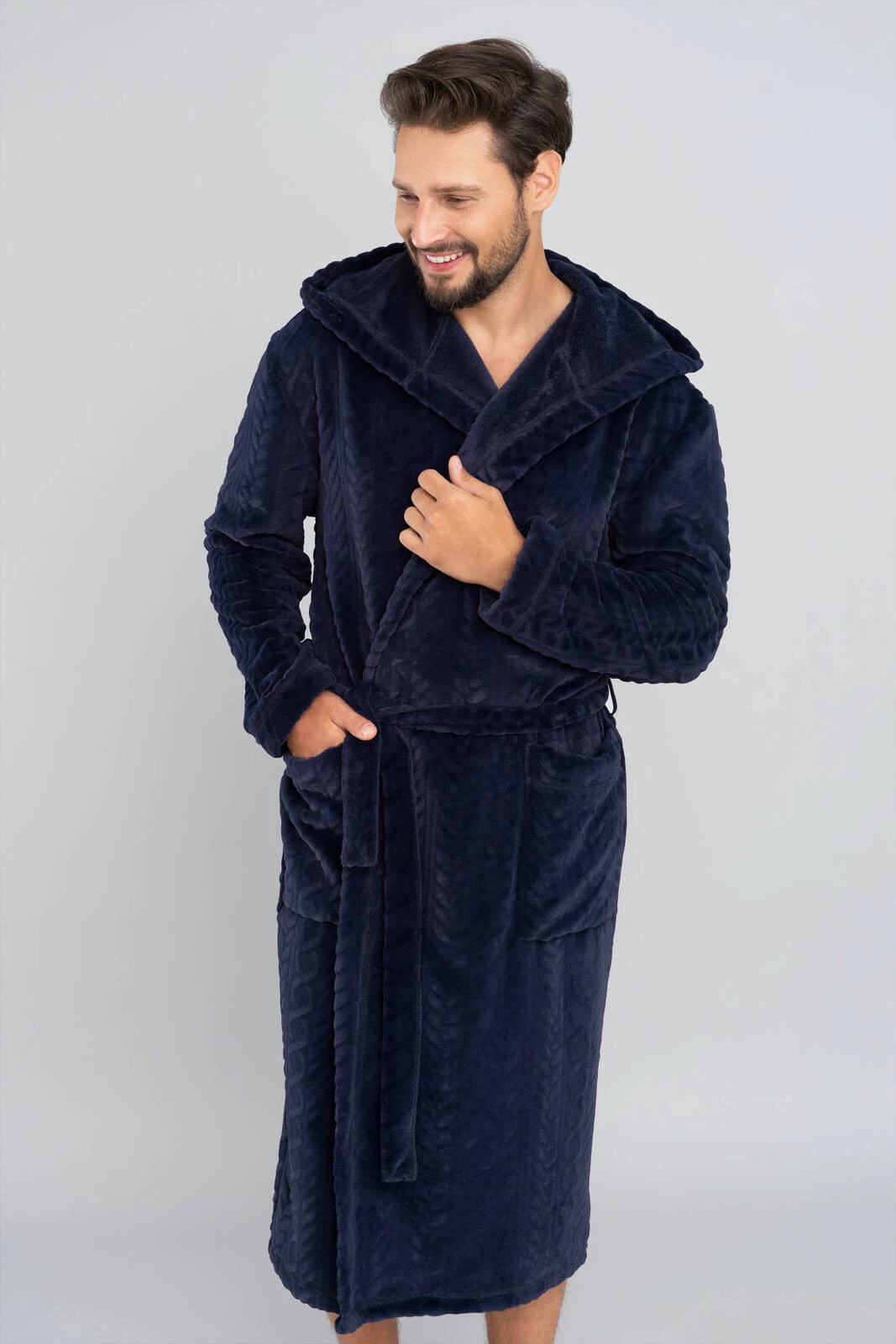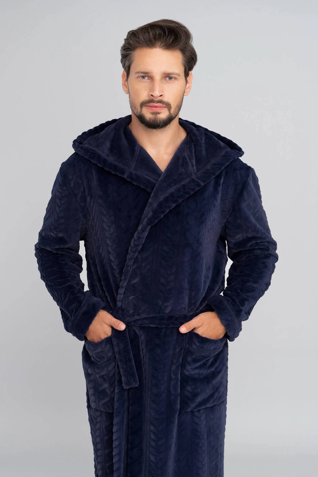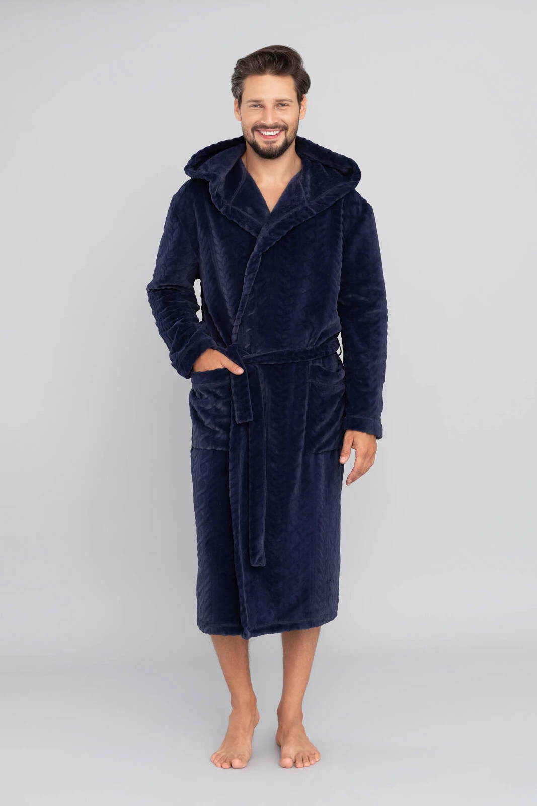 Langärmliger Herren-Bademantel mit Kapuze von Zygmunt – Marineblau