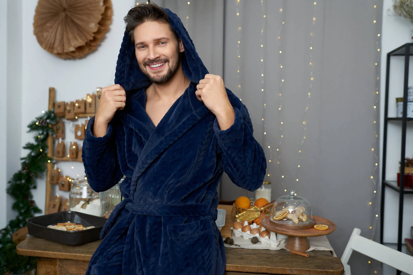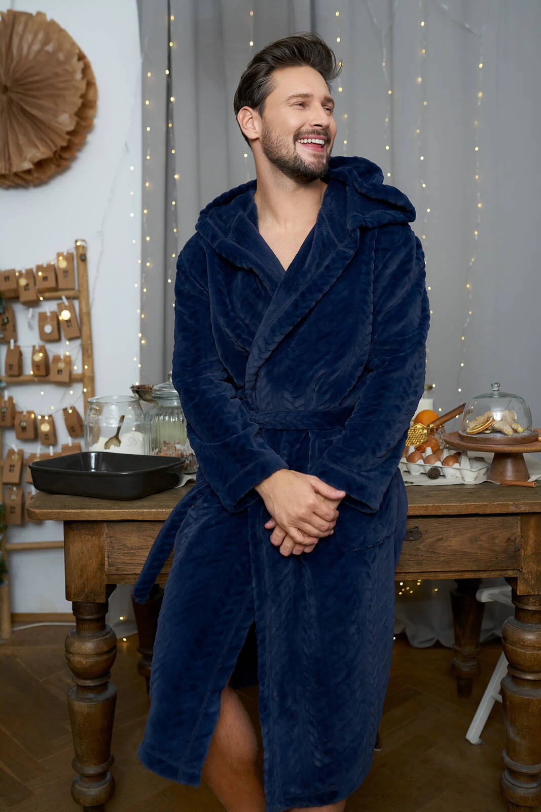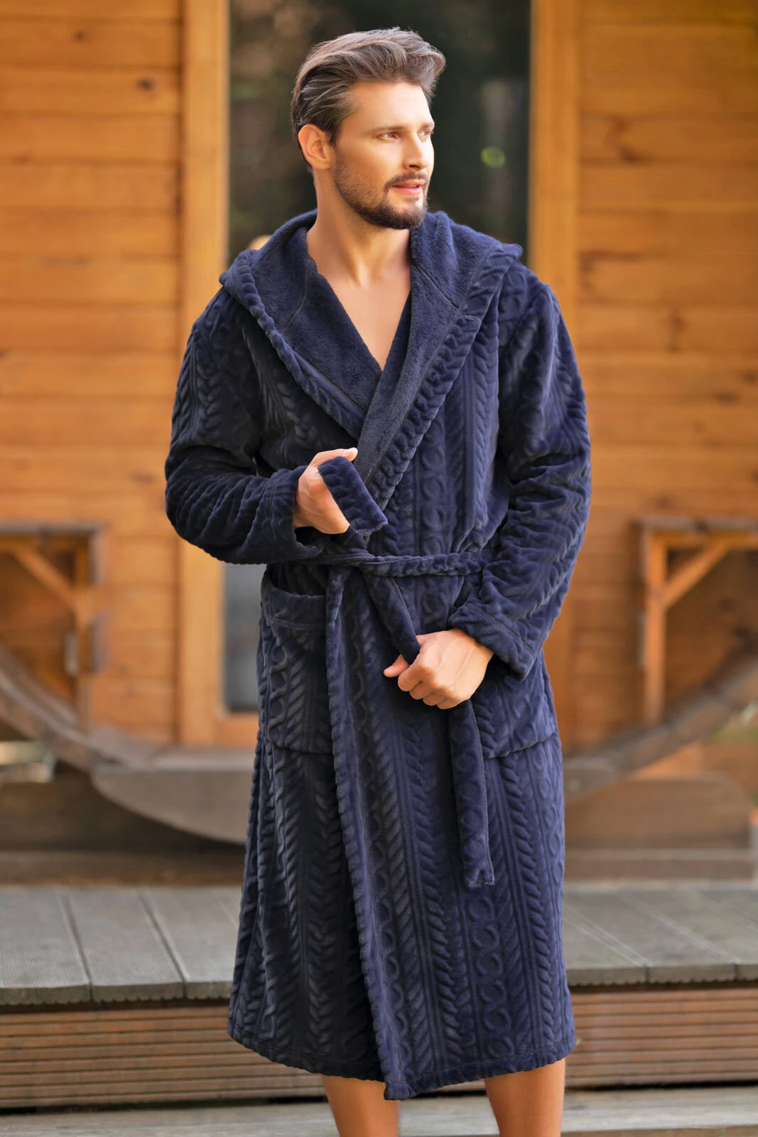 Langärmliger Herren-Bademantel mit Kapuze von Zygmunt – Marineblau