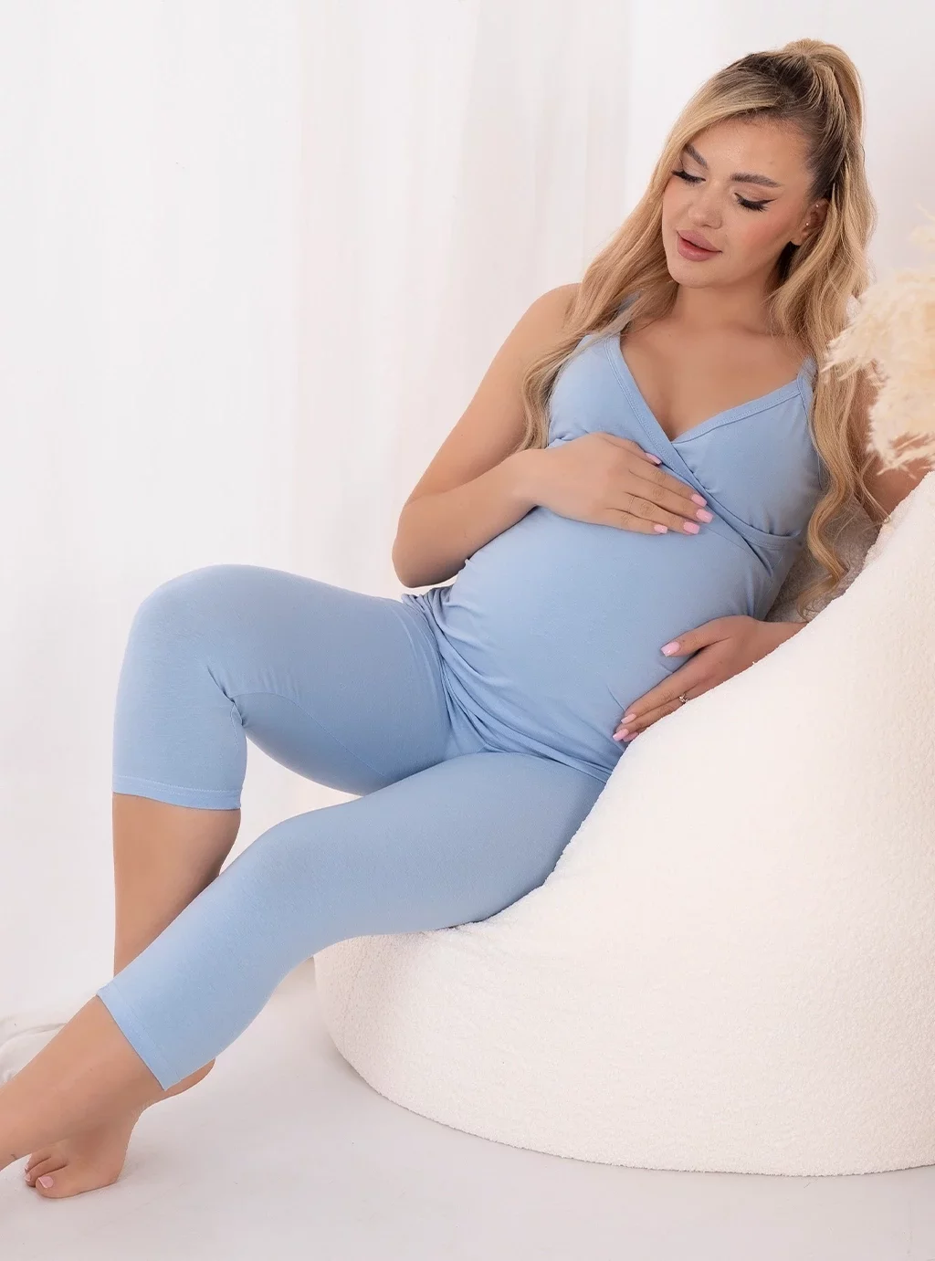 Kleidungsstücke wie unsere Sandy-T-Shirts dürfen in Ihrer Garderobe nicht fehlen. Eine blaue Bluse für Schwangere ist für jede Frau eine stilvolle Wahl, die Sie vom Beginn der Schwangerschaft an in jeder Situation begleiten kann. Für die Arbeit oder einen Spaziergang ist eine babyblaue Bluse mit Trägern eine zeitlose klassische Lösung, die Ihren Bauch bedeckt und Ihnen den Komfort und die Bequemlichkeit bietet, die Sie jetzt brauchen.