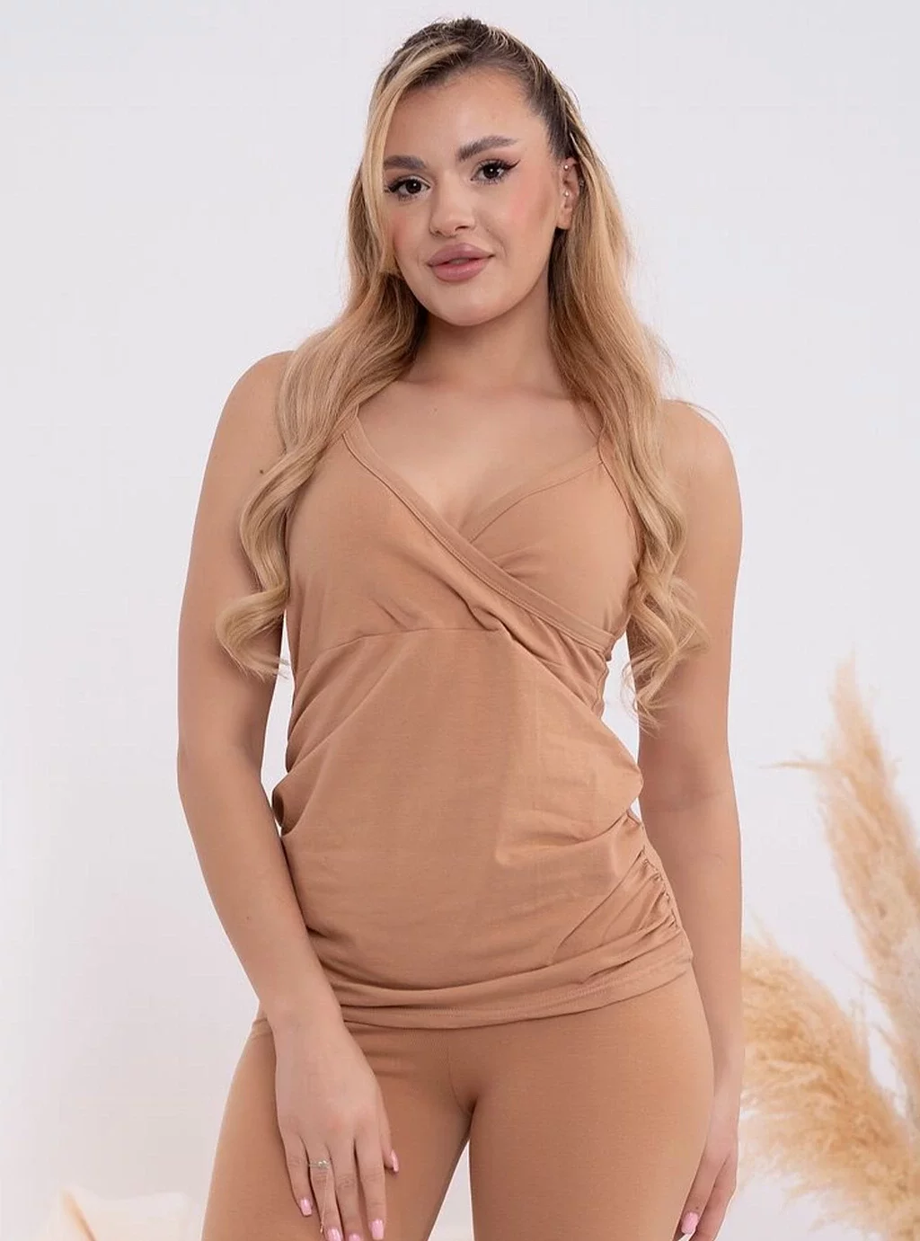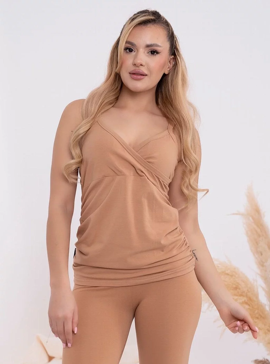 Die Umstands- und Stillbluse Sandy mit Trägern in der Farbe Cappuccino ist die perfekte Wahl für jede Mutter, die Wert auf Komfort, Funktionalität und Stil legt. Es ist ein Muss in der Garderobe jeder werdenden und stillenden Frau und garantiert Komfort und Eleganz in einem.