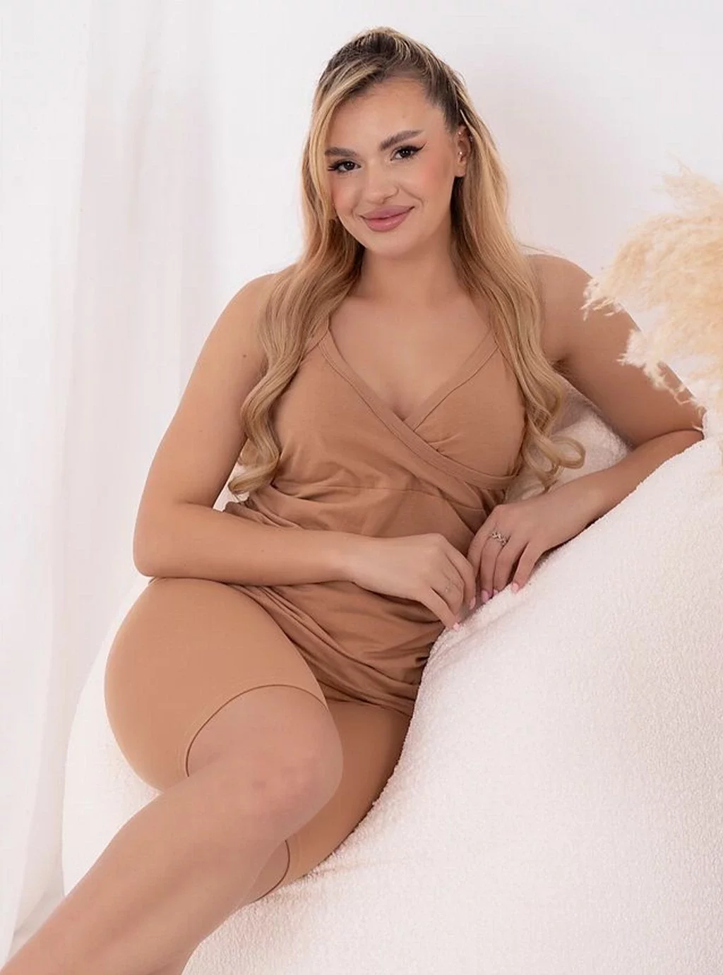 Die Bluse Sandy in der Farbe Cappuccino ist ein einzigartiges Kleidungsstück für zukünftige und stillende Mütter. Sein durchdachter Schnitt und die funktionalen Lösungen machen ihn nicht nur bequem, sondern auch stilvoll und praktisch. Er ist in der eleganten Cappuccino-Farbe erhältlich und verleiht jedem Styling Klasse und Universalität.
