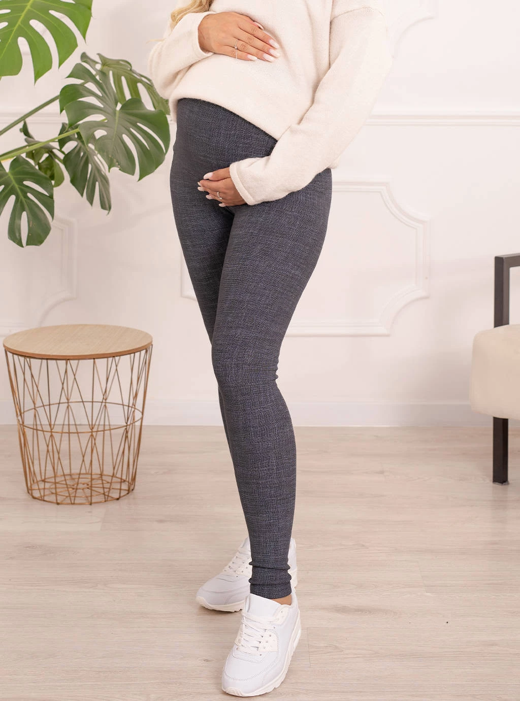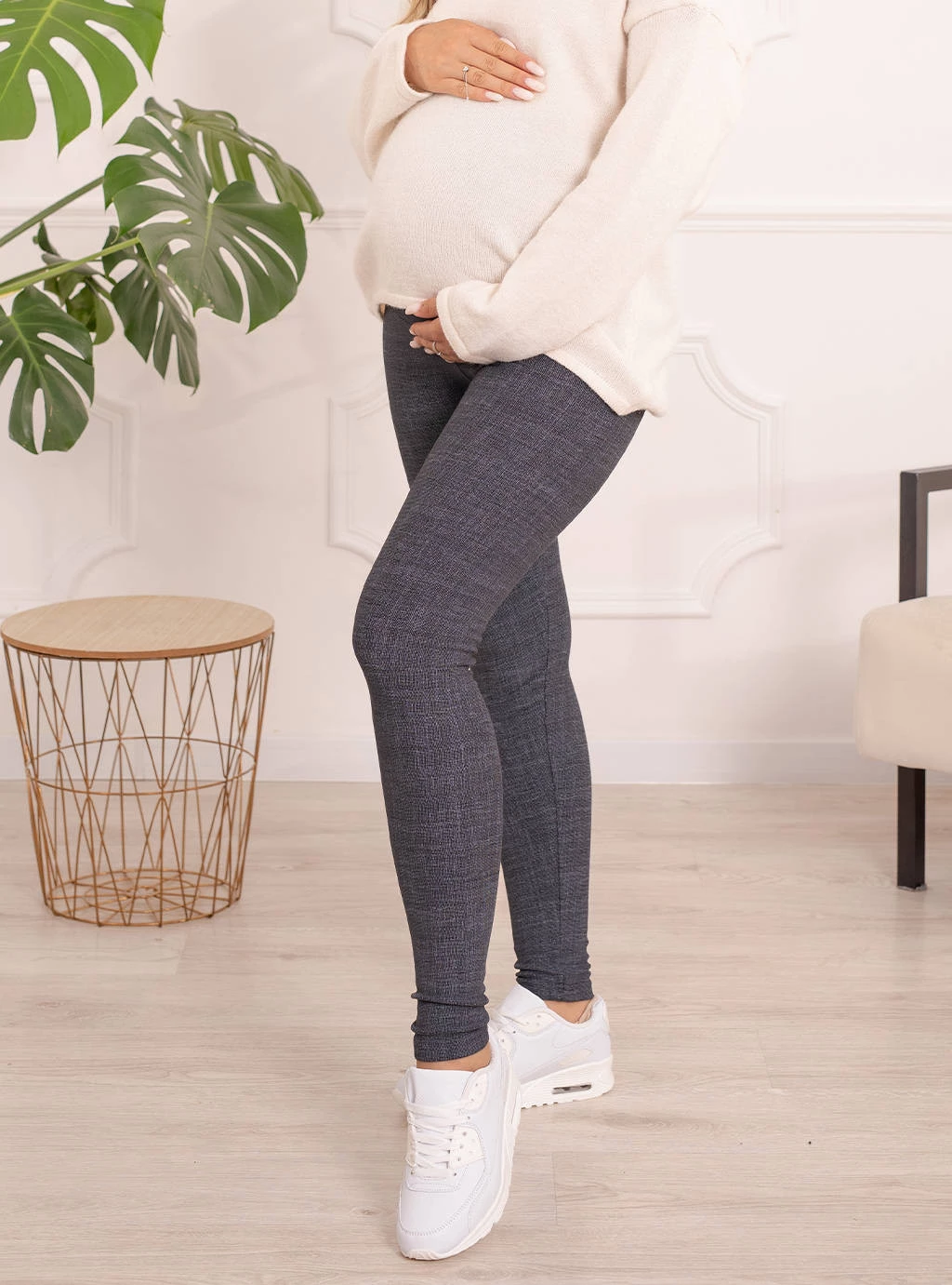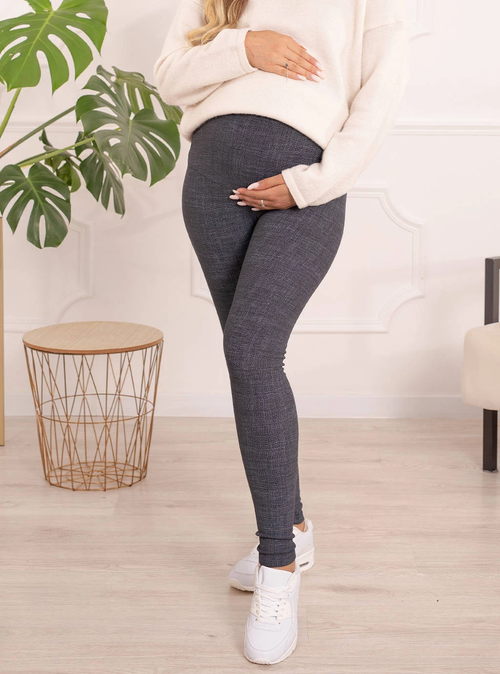 Sie fühlen sich nicht wohl dabei, an kälteren Tagen Hosen zu tragen, die bereits eng sind? Ist Ihnen schon einmal der Gedanke gekommen, dass in Ihrem Kleiderschrank etwas fehlt? Mütter haben es nicht leicht, wenn ihre Lieblingskleidung bereits zu drücken beginnt. Isolierte Umstandsleggings mit Schwangerschaftsgürtel sind die Rettung, sie halten angenehm warm und garantieren Komfort, ohne auf den Bauch zu drücken. Ihre innere Schicht ist in ein körpernahes Fleece gehüllt, das eine weiche und warme Barriere gegen die Kälte bildet. Sorgfältig hergestellt aus hochwertigem, weichem und angenehmem Strick. Ihr größter Vorteil ist ihr unglaublicher Komfort, der für schwangere Frauen so wichtig ist. Sie passen sich perfekt an verschiedene Silhouetten an und betonen die Schönheit der weiblichen Formen auf brillante Weise. Sie verlängern und verschlanken die Silhouette perfekt und sind eine tolle Basis für viele Outfits zu jedem Anlass. Kombinieren Sie sie mit einer eleganten Bluse und Stilettos oder Ballerinas, oder mit einem sportlichen T-Shirt und Turnschuhen. Jede junge Mutter wird sie mögen, wenn ihre bisherigen Leggings oder Hosen nicht mehr zu ihrem Schwangerschaftsbauch passen. Derzeit sind Leggings ein Muss in der Garderobe jeder Mutter, nicht nur wegen ihres Komforts, sondern vor allem wegen ihrer universellen Verwendbarkeit und der Gewissheit, dass sie nie aus der Mode kommen werden. Das Umstandspaneel wächst mit dem Bauch mit und ermöglicht es Ihnen, es bis zum Ende der Schwangerschaft zu tragen.