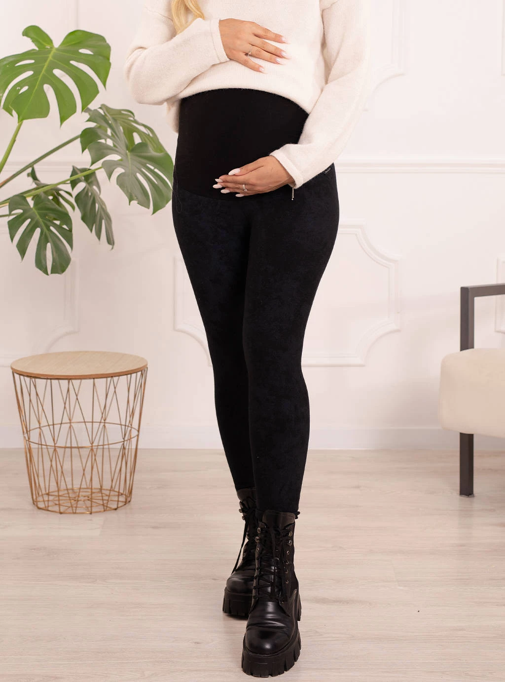 Sie fühlen sich nicht wohl dabei, an kälteren Tagen Hosen zu tragen, die bereits eng sind? Ist Ihnen schon einmal der Gedanke gekommen, dass in Ihrem Kleiderschrank etwas fehlt? Mütter haben es nicht leicht, wenn ihre Lieblingskleidung bereits zu drücken beginnt. Isolierte Umstandsleggings mit Schwangerschaftsgürtel sind die Rettung, sie halten angenehm warm und garantieren Komfort, ohne auf den Bauch zu drücken. Ihre innere Schicht ist in ein körpernahes Fleece gehüllt, das eine weiche und warme Barriere gegen die Kälte bildet. Sorgfältig hergestellt aus hochwertigem, weichem und angenehmem Strick. Ihr größter Vorteil ist ihr unglaublicher Komfort, der für schwangere Frauen so wichtig ist. Sie passen sich perfekt an verschiedene Silhouetten an und betonen die Schönheit der weiblichen Formen auf brillante Weise. Sie verlängern und verschlanken die Silhouette perfekt und sind eine tolle Basis für viele Outfits zu jedem Anlass. Kombinieren Sie sie mit einer eleganten Bluse und Stilettos oder Ballerinas, oder mit einem sportlichen T-Shirt und Turnschuhen. Jede junge Mutter wird sie mögen, wenn ihre bisherigen Leggings oder Hosen nicht mehr zu ihrem Schwangerschaftsbauch passen. Derzeit sind Leggings ein Muss in der Garderobe jeder Mutter, nicht nur wegen ihres Komforts, sondern vor allem wegen ihrer universellen Verwendbarkeit und der Gewissheit, dass sie nie aus der Mode kommen werden. Das Umstandspaneel wächst mit dem Bauch mit und ermöglicht es Ihnen, es bis zum Ende der Schwangerschaft zu tragen.