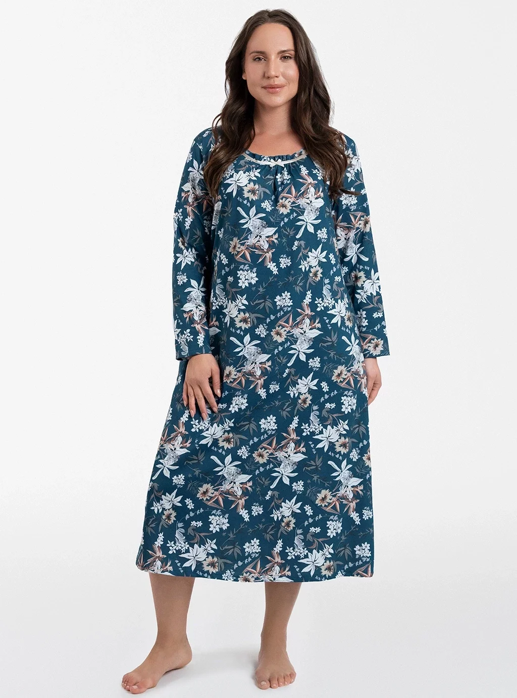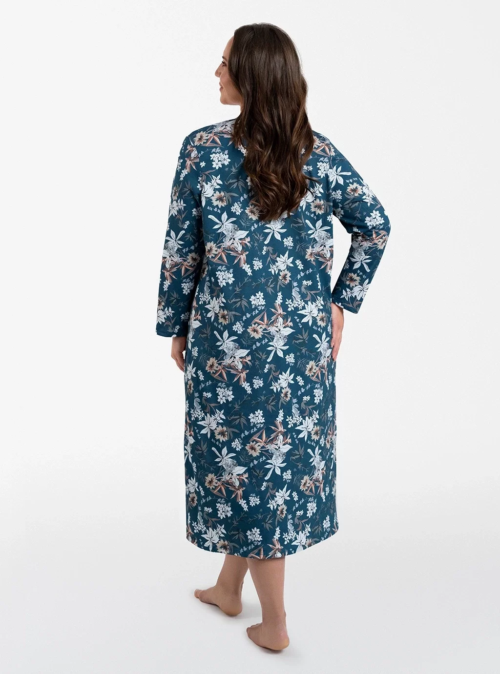 Das einzigartige langärmlige Hariet-Damennachthemd mit Blumen und Blau ist eine Kombination aus Komfort, Funktionalität und romantischem Design, mit der sich jede Frau beim Schlafen schön und wohl fühlen wird.