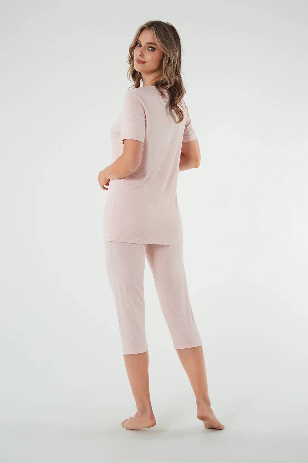 Puntini Damenpyjama, kurze Ärmel, 3/4 Hose – Puderrosa