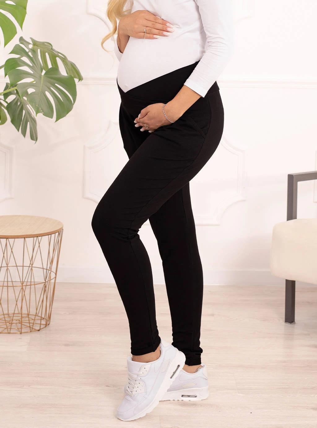 Spodnie idealnie przylegają do ciała, nie obciskając go. Elastyczny materiał sprawia, że ubranie nie krępuje ruchów oraz jest bardzo wygodne. Ponadto świetnie dopasowuje się do ciała, podkreślając figurę. Materiał, z którego wykonano jeansy ciążowe, jest bardzo miękki i delikatny w dotyku.