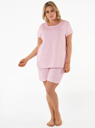 Leta Damen-Kurzarmpyjama. kurze Hose mit puderrosa Aufdruck