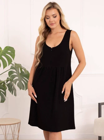 Elegantes schwarzes Umstandsshirt von hoher Qualität. Das Oberteil mit breiteren Trägern und dem schönen Ausschnitt lässt Sie in diesem Umstandsshirt und Stillshirt sehr charmant aussehen. Der Reißverschluss in der Mitte erleichtert das Füttern Ihres Babys, wenn Sie einen schnellen Zugang zur Brust brauchen.