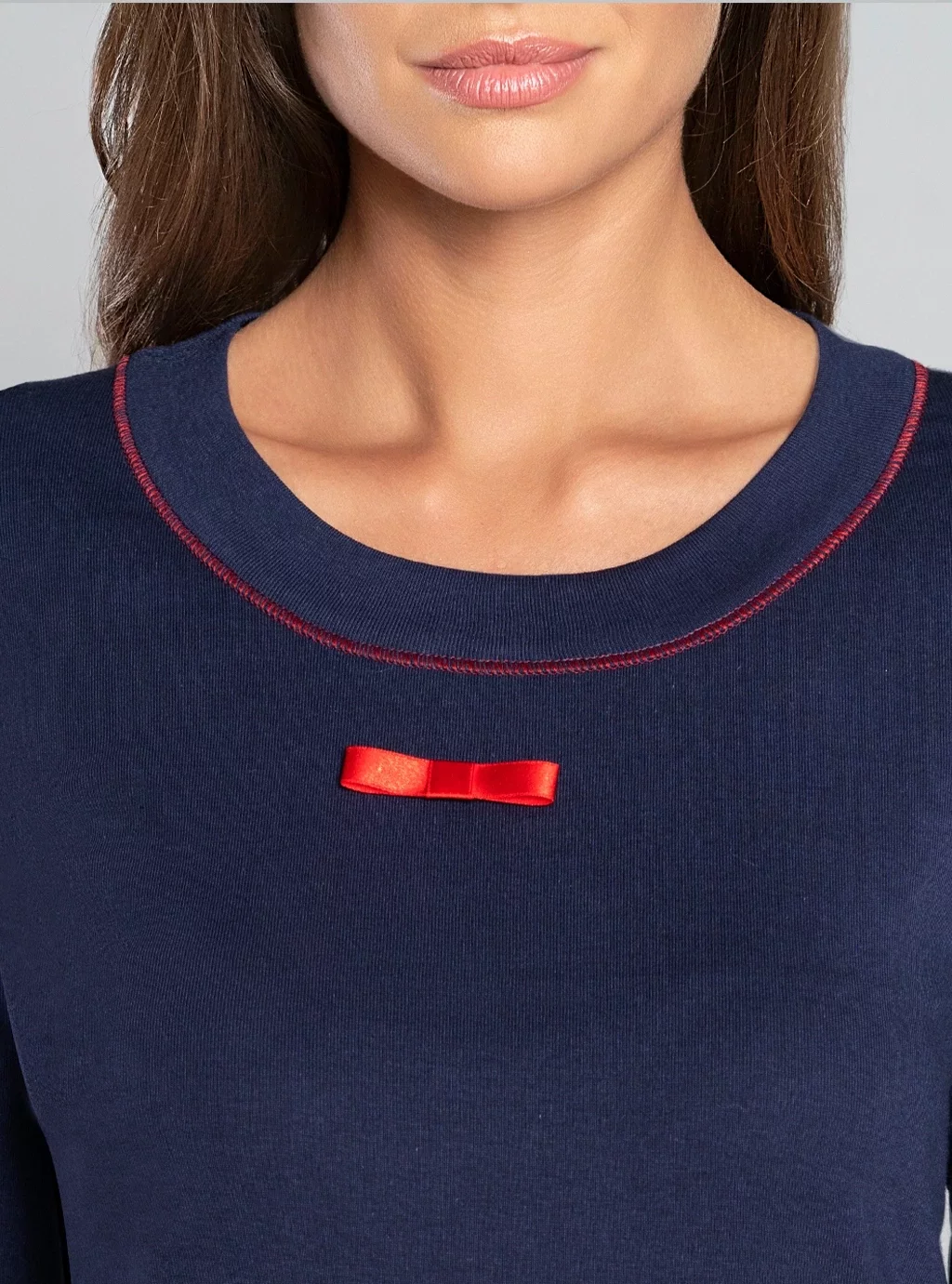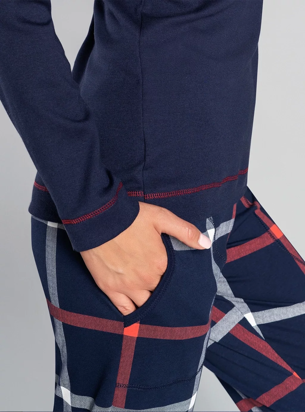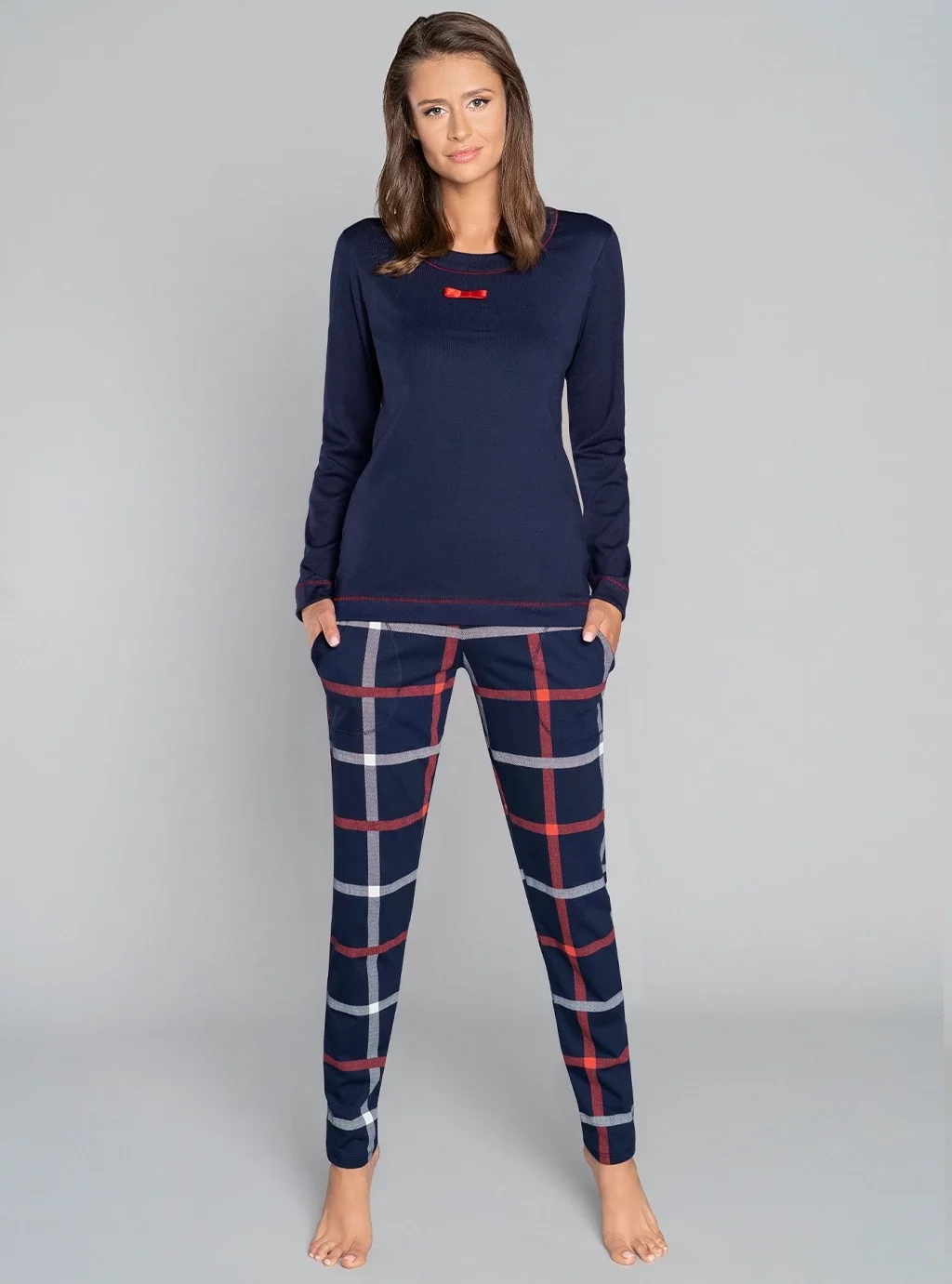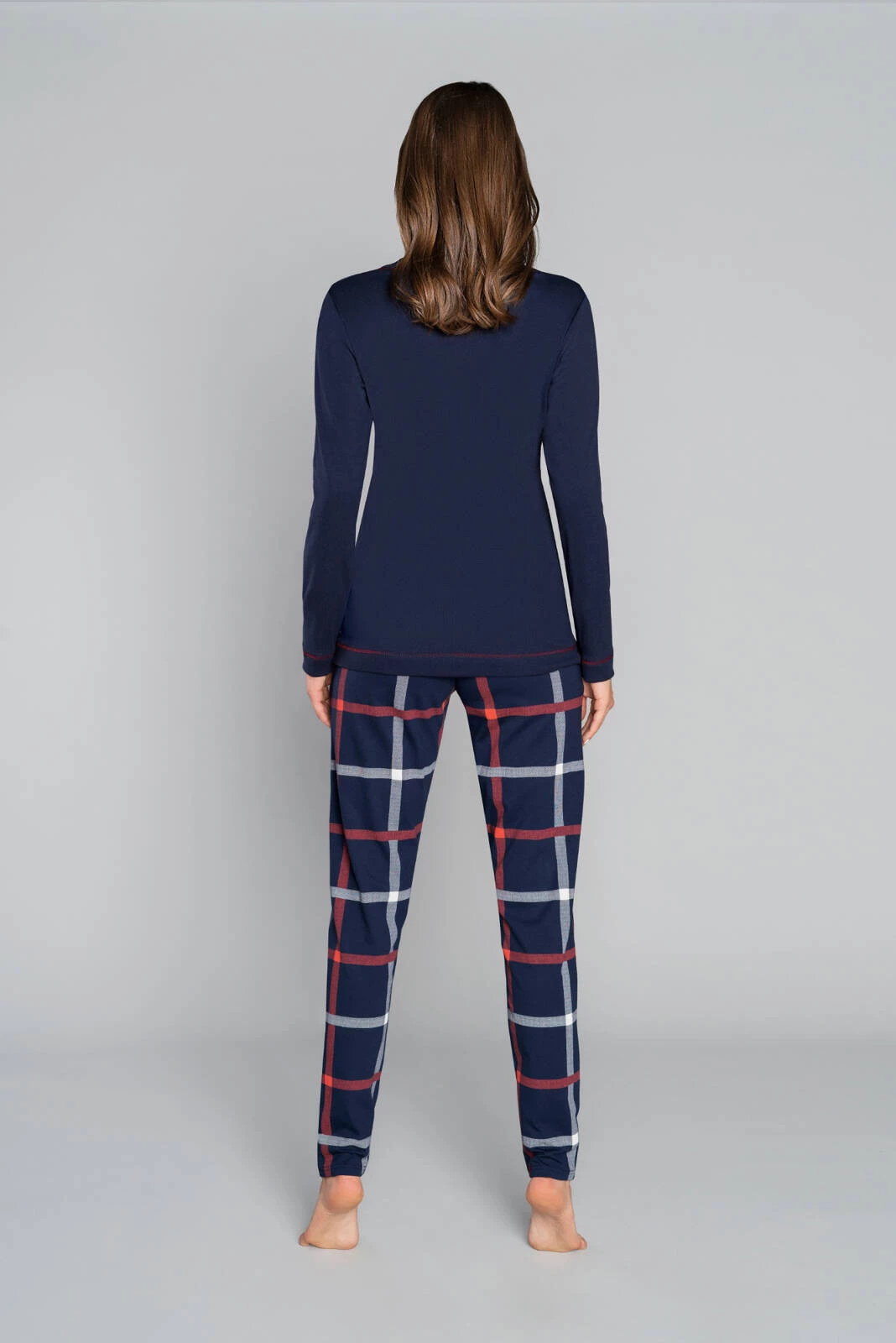 Damenpyjama Izera mit langen Ärmeln und langen Hosen - Marineblau