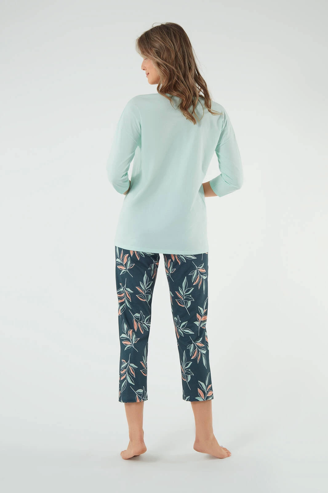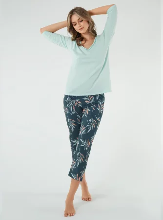 Julietta Damen-Pyjama mit 3/4-Ärmeln. 7/8-Hose Pistazie/Druck