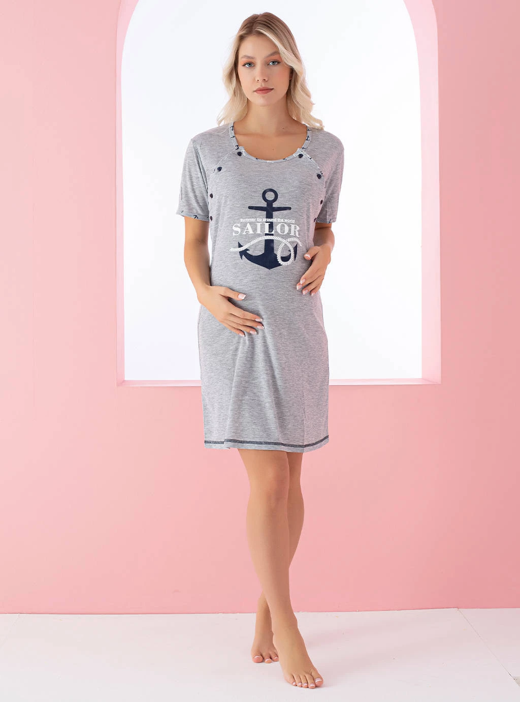 In unserem Online-Shop bemühen wir uns darum, dass sich jede Frau wohlfühlt und IHR Nachthemd in unserem Sortiment findet. Das graue Umstandsnachthemd Sailor ist aus luftiger, kleinkindsicherer Baumwolle gefertigt und hat ein besonders angenehmes Material, damit sich auch die junge Mutter wohlfühlt. Der schnelle Zugang zur Brust dank der seitlichen Öffnung ermöglicht ein ungehindertes Stillen des Neugeborenen. Wählen Sie noch heute aus einer Vielzahl von Hemdenmodellen und lassen Sie sich von unseren Beraterinnen bei der Auswahl des passenden Umstands- und Stillhemdes beraten.