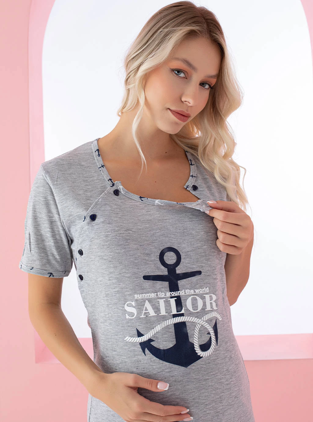 Das graue Sailor-Shirt mit Stillanker gibt Ihnen ein Gefühl von Komfort, wenn Sie Ihr Kind stillen, und wenn Sie schwanger sind, passt es sich Ihrem sich verändernden Körper an und sorgt für einen gesunden Schlaf, da alle Produkte von Formomma aus den besten Baumwollstoffen und Strickwaren hergestellt werden. Dabei spielt es keine Rolle, ob Sie die Stillshirts im Button-up-, Button-down- oder Envelope-Schnitt lieben werden.