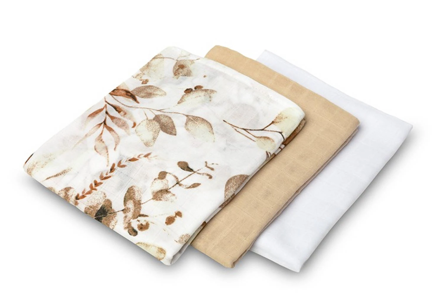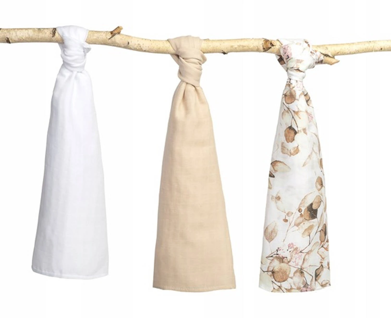 Pieluszki MUŚLINOWE super miękkie są niezbędnym elementem wyprawki – niezastąpione zarówno w okresie noworodkowym, jak i niemowlęcym. Muślin jest to dwuwarstwowa tetra ze 100% bawełny, cechująca się niezwykłą lekkością i przewiewnością. Pieluszki z tego materiału mogą być wykorzystywane już od pierwszych dni życia – jako otulacz, lekki kocyk, podkład do przewijania, prześcieradło czy podręczny ręcznik. Świetnie sprawdzą się jako okrycie podczas karmienia piersią czy podkład na ramię rodzica chroniący ubranie przed ulewaniem. Mogą też posłużyć jako przytulanka do snu albo lekka osłona do wózka. Sprawdzą się w każdej sytuacji wymagającej bliskości ze skórą maleństwa. Zestaw zawiera 3 sztuki pieluszek: 2 z nich są zdobione kolorowymi nadrukami, trzecia jest barwiona jednolicie. Pakowane są w transparentną torbę zapinaną na napy.