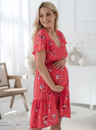 Lovely Dress Umstands- und Stillkleid, kurze Ärmel – Koralle