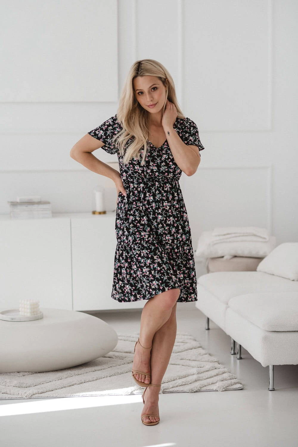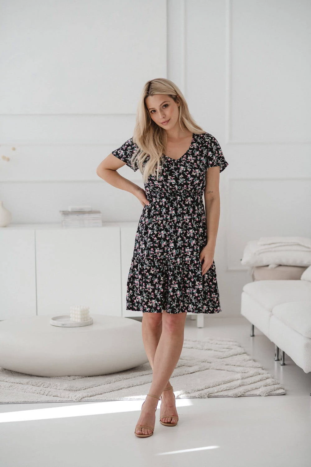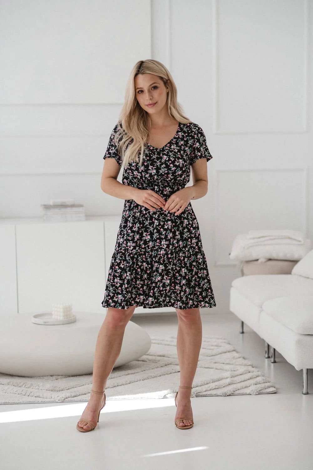 Schönes Umstands- und Stillkleid mit kurzen Ärmeln und Rosen
