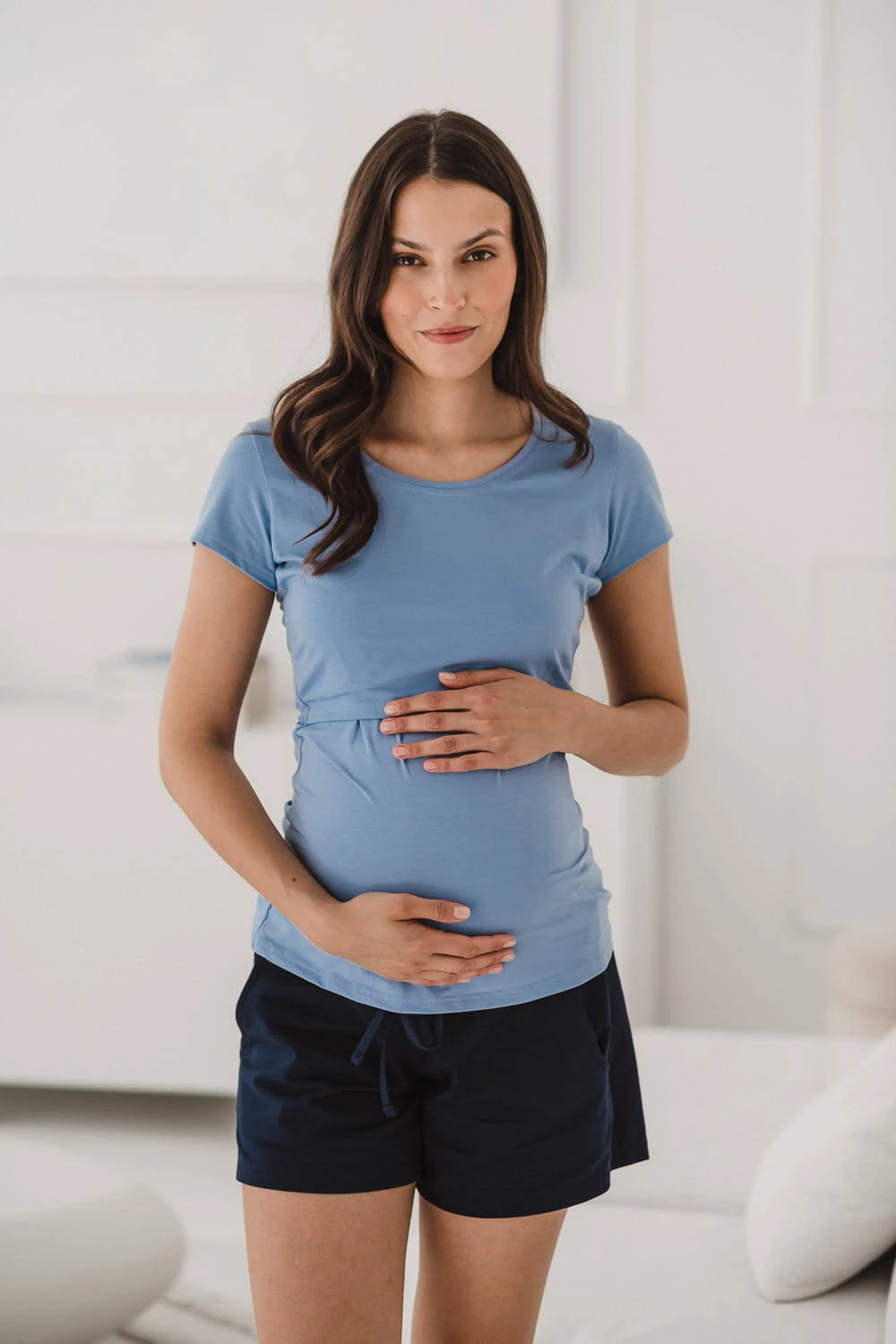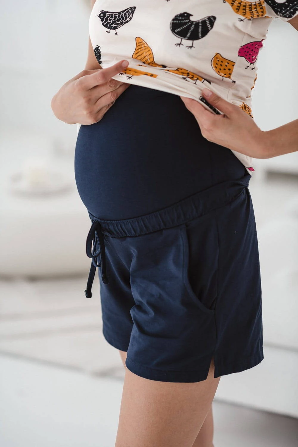 Marineblaue Shorts für die Schwangerschaft und danach sind ein Angebot für Frauen, die Wert auf ein tolles Outfit, Funktionalität und hohe Qualität legen. Umstandsshorts für werdende Mütter, die auf Komfort ausgelegt sind, eignen sich sowohl während der Schwangerschaft als auch nach der Schwangerschaft perfekt. Dank des Umstandseinsatzes und der Kordelzugregulierung dieser vielseitigen Hose können Sie sich frei bewegen, ohne den Bauch einzuengen, was in dieser einzigartigen Zeit zu einem hohen Tragekomfort führt.