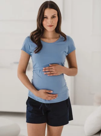 Beachten Sie die marineblauen Umstandsshorts aus hochwertigstem Stoff. Diese bequeme Kleidung für zukünftige Mütter verleiht Stil und unterstützt den wachsenden Schwangerschaftsbauch, was in dieser besonderen Zeit sehr wichtig ist. Besonders an Sommertagen sind Umstandsshorts eine gute Option, wenn sie mit einem bequemen T-Shirt kombiniert werden können. Bequeme Umstandshosen sind auch an kalten Tagen eine praktische Alternative – wählen Sie einfach eine warme Strumpfhose und ein warmes Umstands-Sweatshirt aus der stylischen Milk Please-Kollektion in unserem Online-Shop, um sich warm und wohl zu fühlen. Perfekte Shorts für Schwangere sind ein unverzichtbarer Bestandteil der Garderobe jeder stilvollen Frau, egal ob Frühling oder Winter.